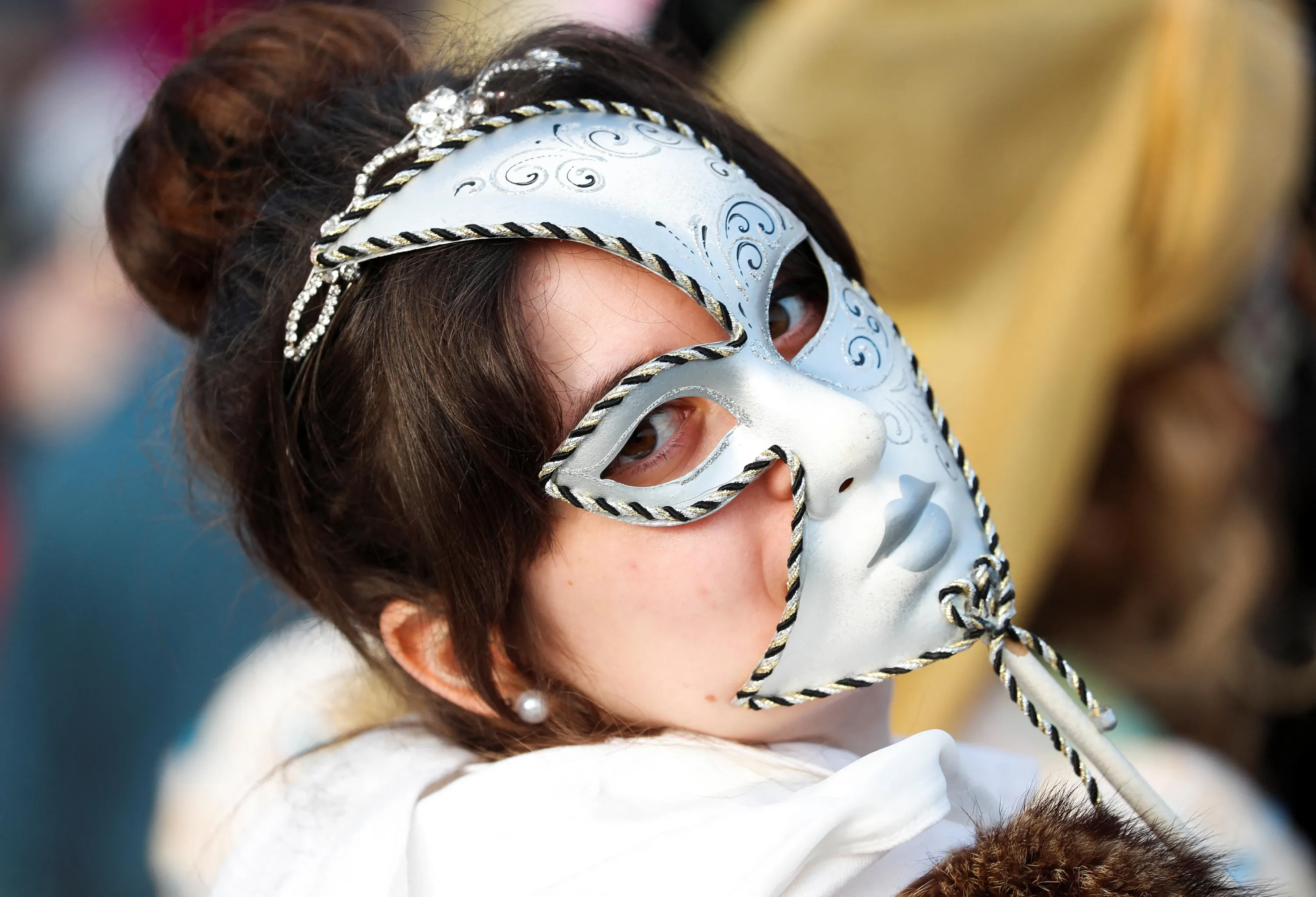 A masked reveller takes part in the Venice carnival, in Venice, Italy on February 4, 2023. (Photo by Remo Casilli/Reuters)