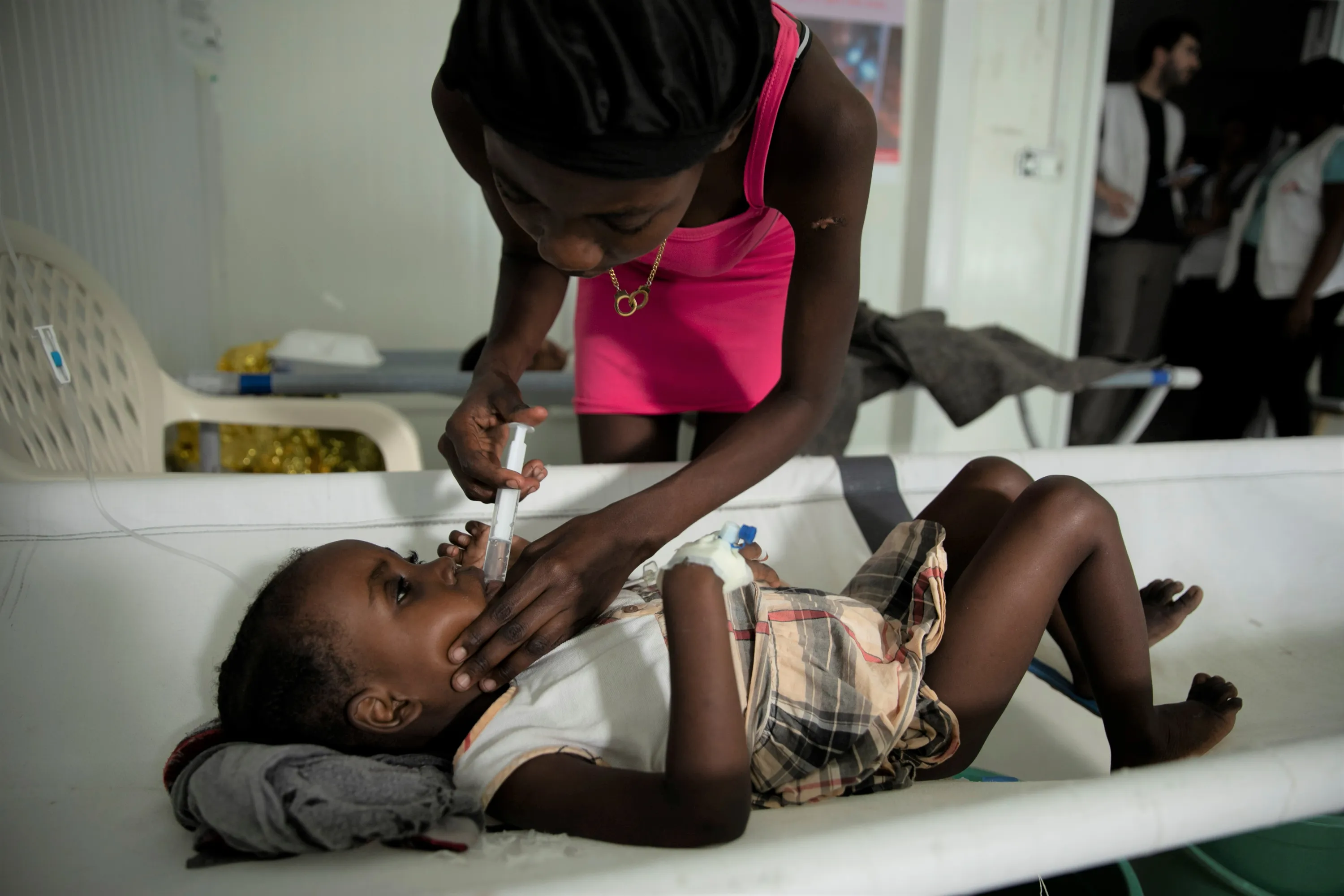 A girl with cholera symptoms is helped by her mother at a clinic run by Doctors Without Borders, in the Delmas neighborhood of Port-au-Prince, Haiti, Thursday, November 10, 2022. Across Haiti, many patients are dying because say they’re unable to reach a hospital in time, health officials say. (Photo by Joseph Odelyn/AP Photo)