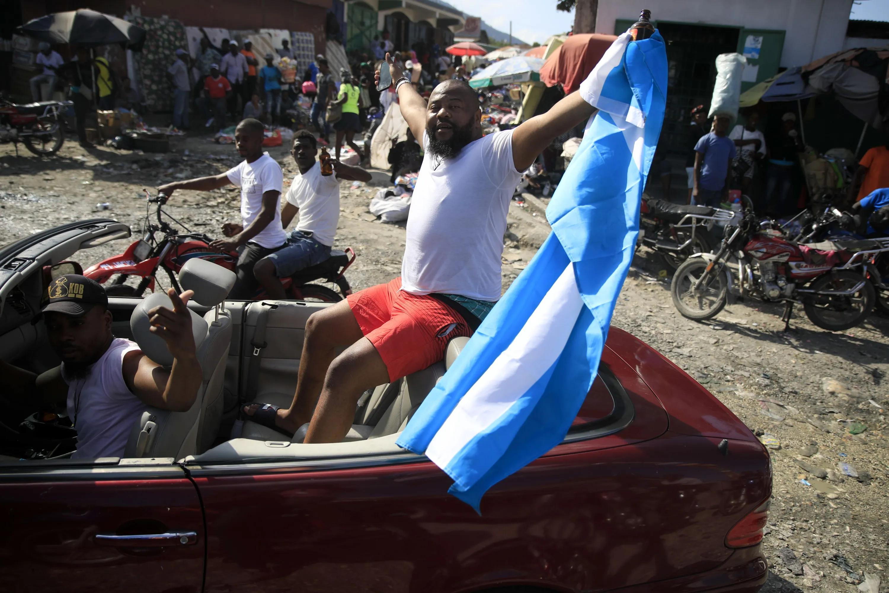 Soccer fans celebrate Argentina victory over France in the World Cup final soccer match in Port-au-Prince, Haiti, Sunday, December 18, 2022. (Photo by Odelyn Joseph/AP Photo)
