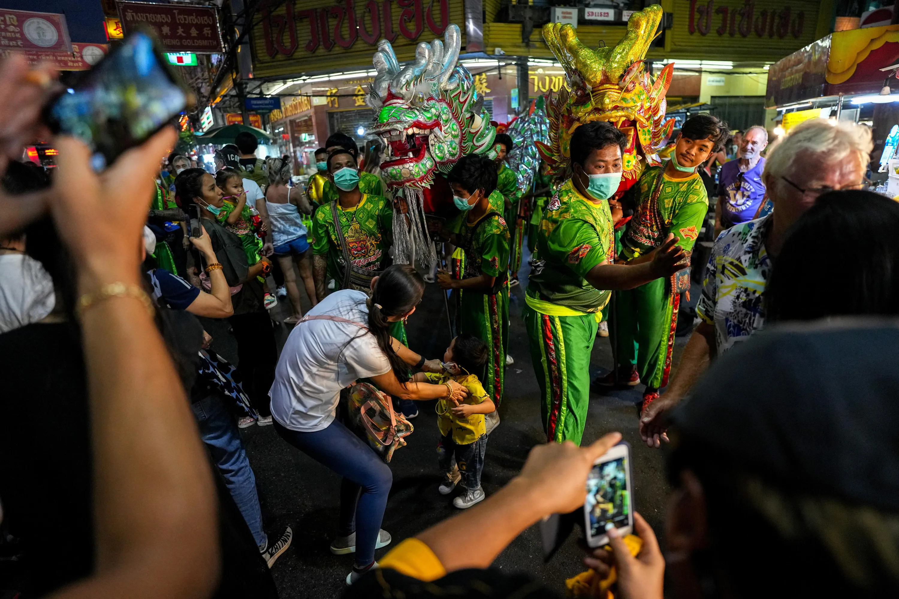 Tourists take pictures as dancers perform with dragons ahead of Lunar New Year in Bangkok's Chinatown, Thailand on January 19, 2023. (Photo by Athit Perawongmetha/Reuters)
