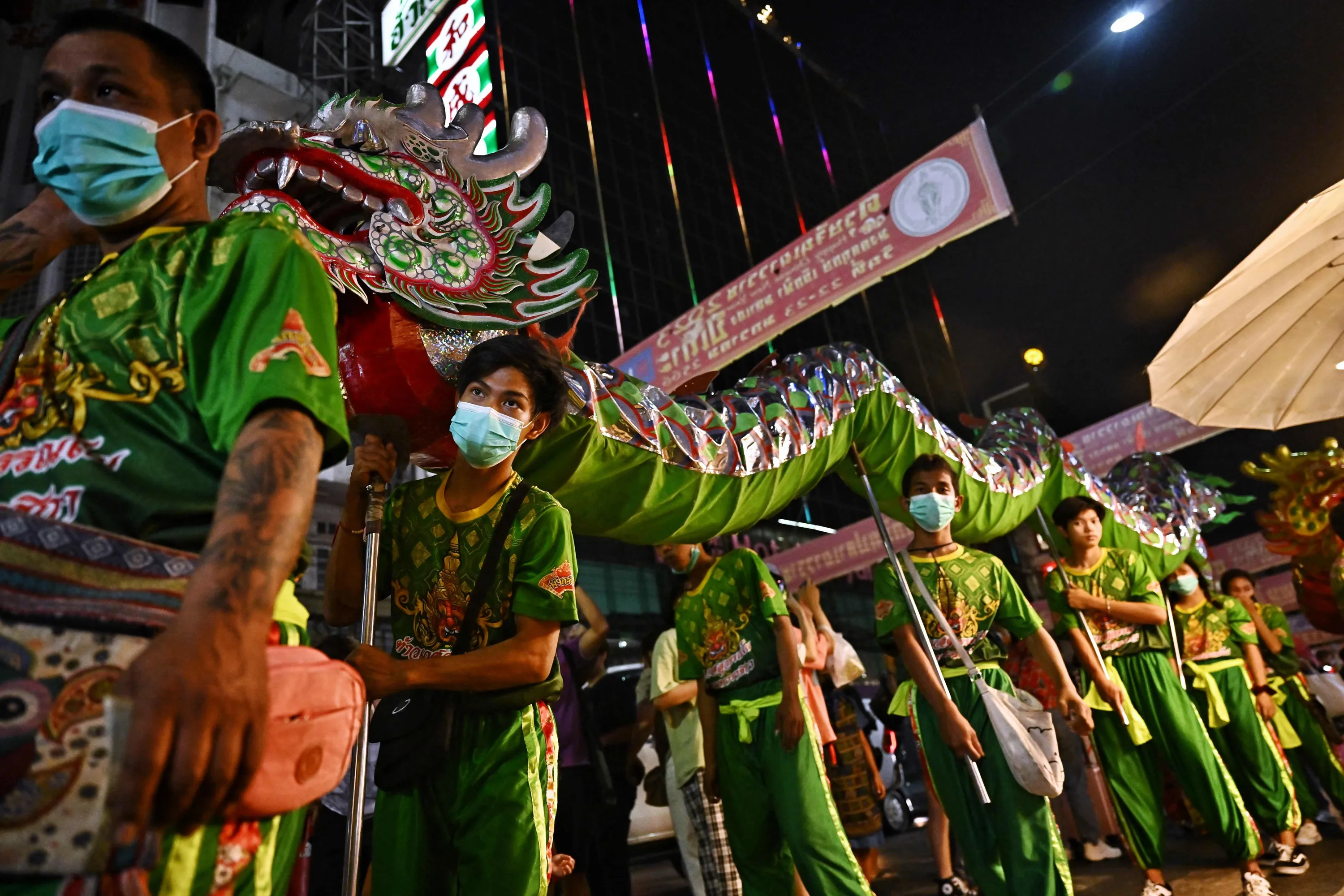 Dragon dancers perform in Chinatown in Bangkok on January 19, 2023, ahead of the Lunar New Year of the Rabbit, which falls on January 22. (Photo by Lillian Suwanrumpha/AFP Photo)