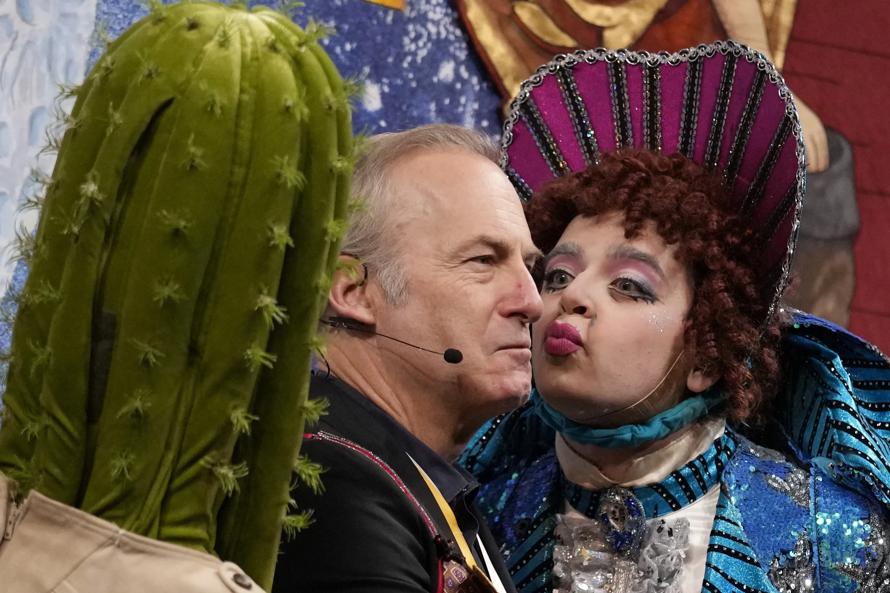 American actor, comedian and filmmaker Bob Odenkirk is kissed during a roast while being honored as Man of the Year by Harvard University's Hasty Pudding Theatricals, Thursday, February 2, 2023, in Cambridge, Mass. (Photo by Charles Krupa/AP Photo)