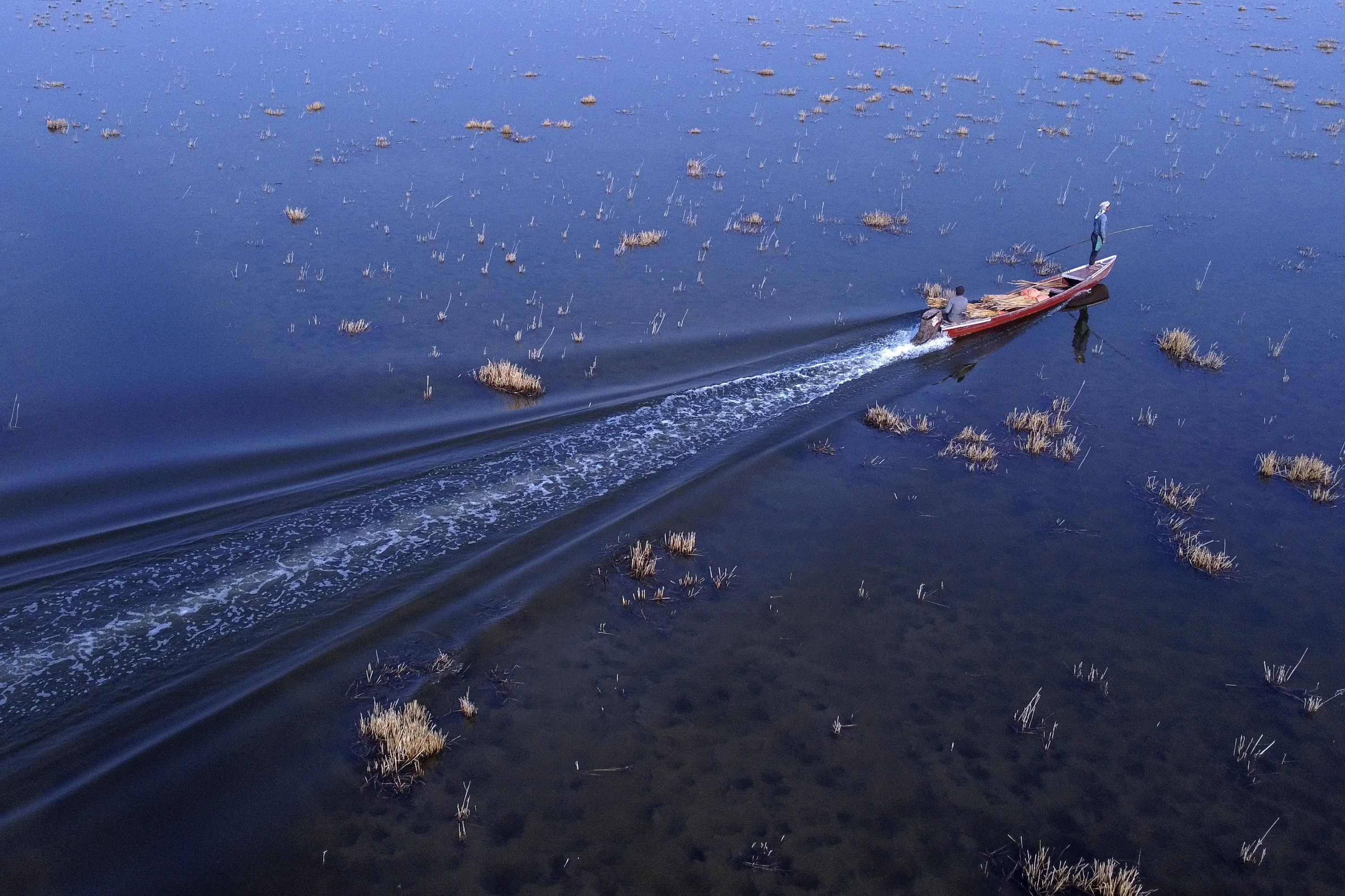 Iraqi farmers transport reeds by boat on the waters of the southern Chibayish marshes in Dhi Qar province, on January 23, 2023, as water levels recover following a rainy period. (Photo by Asaad Niazi/AFP Photo)