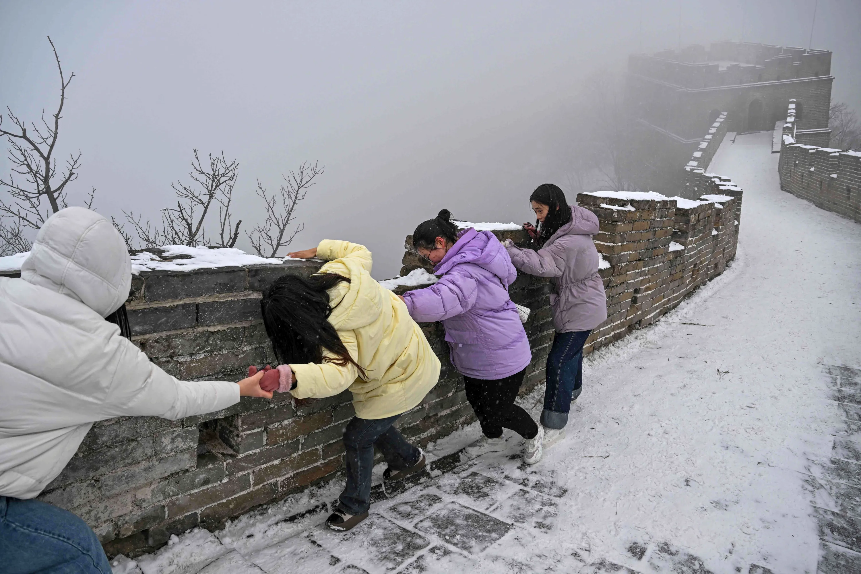 People visit the Great Wall in Mutianyu in the Huairou district, over 70km from Beijing on February 12, 2023. (Photo by Hector Retamal/AFP Photo)