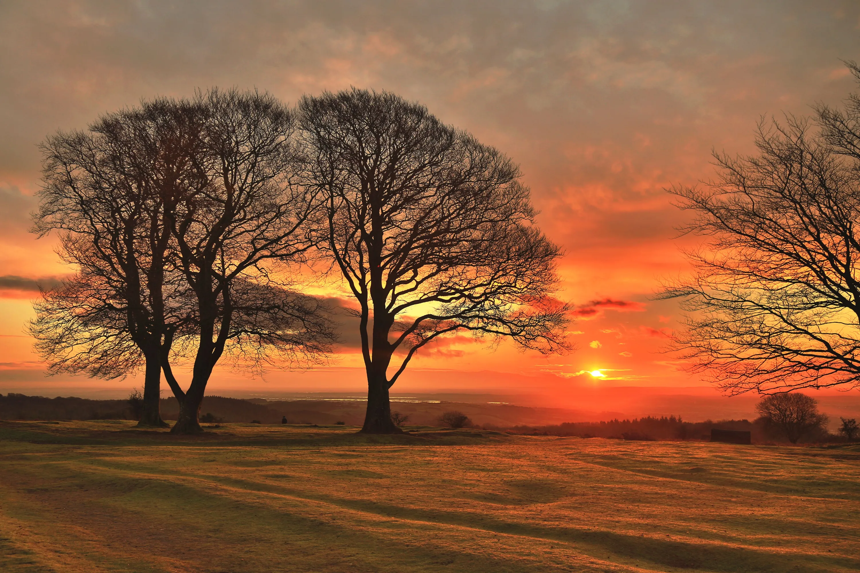 Sunrise this morning, January 1, 2023 behing the Seven Sisters Teees at Cothelstone Hill in the Quantock Hills, England. (Photo by Paul Silvers/Bournemouth News)