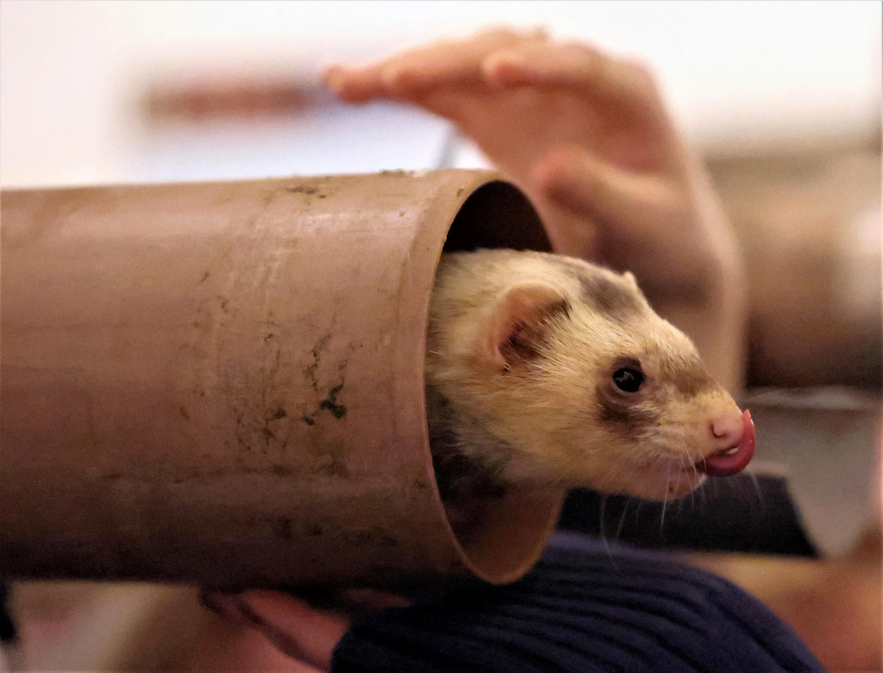 A ferret competes in a heat during the annual Ferret Racing Championship at the Craven Arms and Cruck Barn in Appletreewick, Britain on February 8, 2023. (Photo by Lee Smith/Reuters)