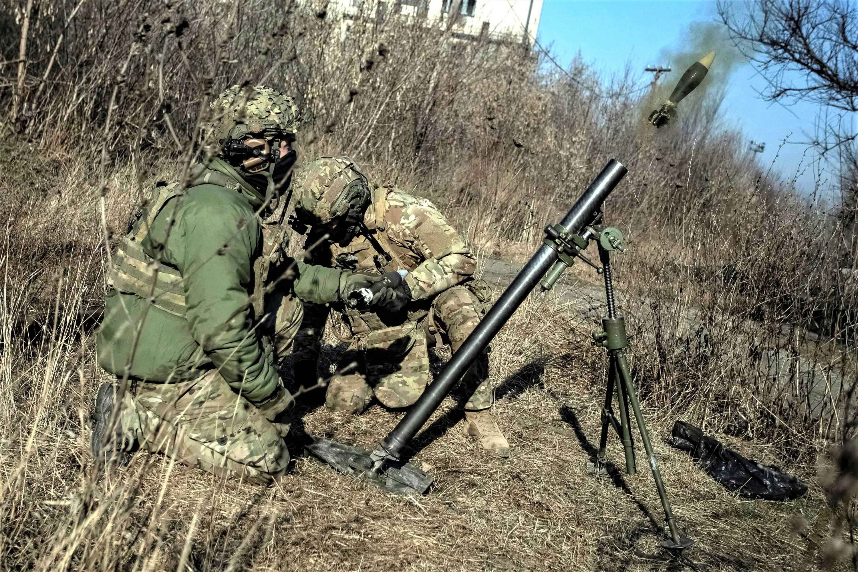 Ukrainian servicemen fire a mortar on a front line, as Russia's attack on Ukraine continues, in Bakhmut, Donetsk region, Ukraine on January 27, 2023. (Photo by Yan Dobronosov/Reuters)