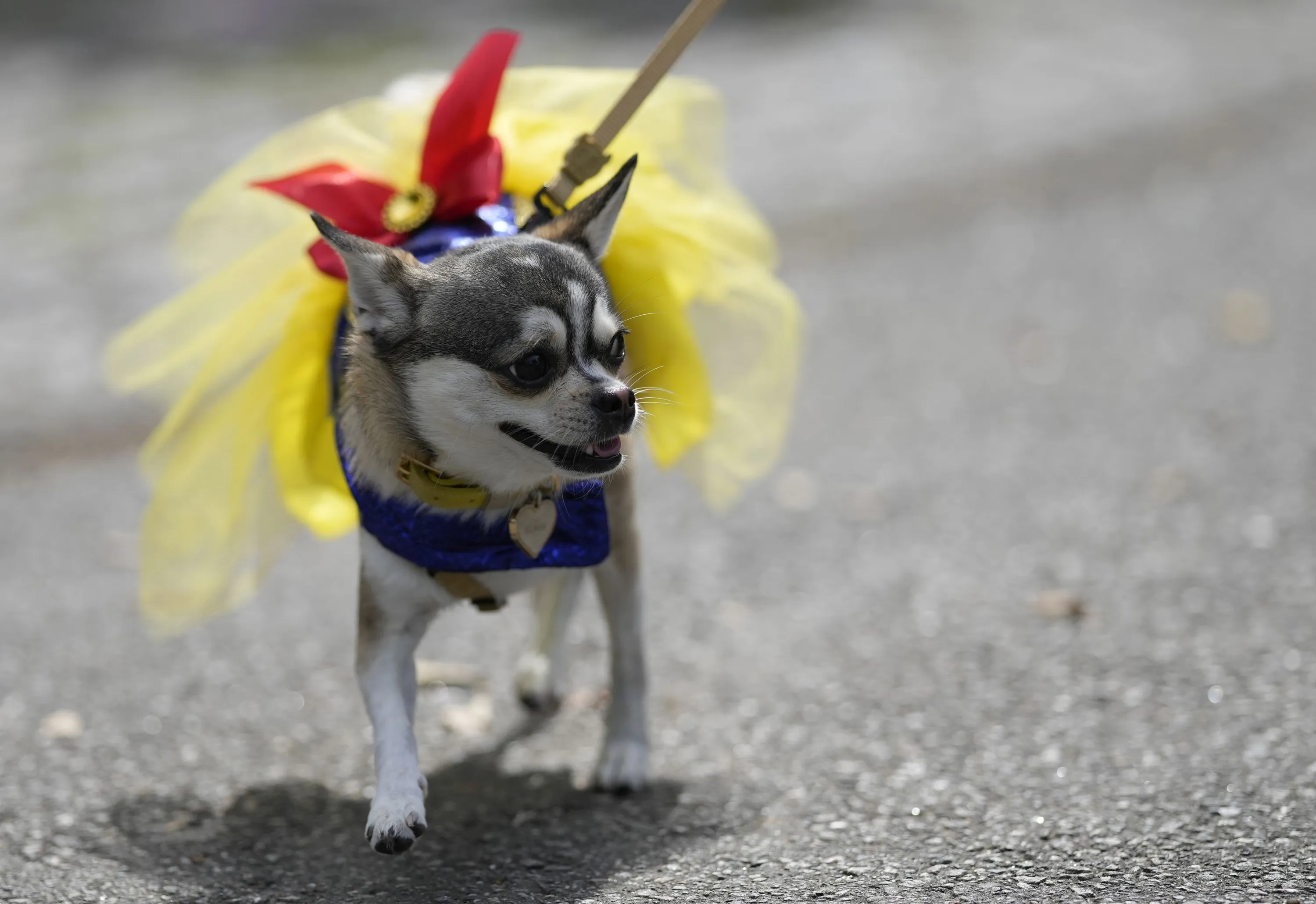 A dog dons a tutu at the “Blocao” dog carnival parade in Rio de Janeiro, Brazil, Saturday, February 18, 2023. (Photo by Silvia Izquierdo/AP Photo)
