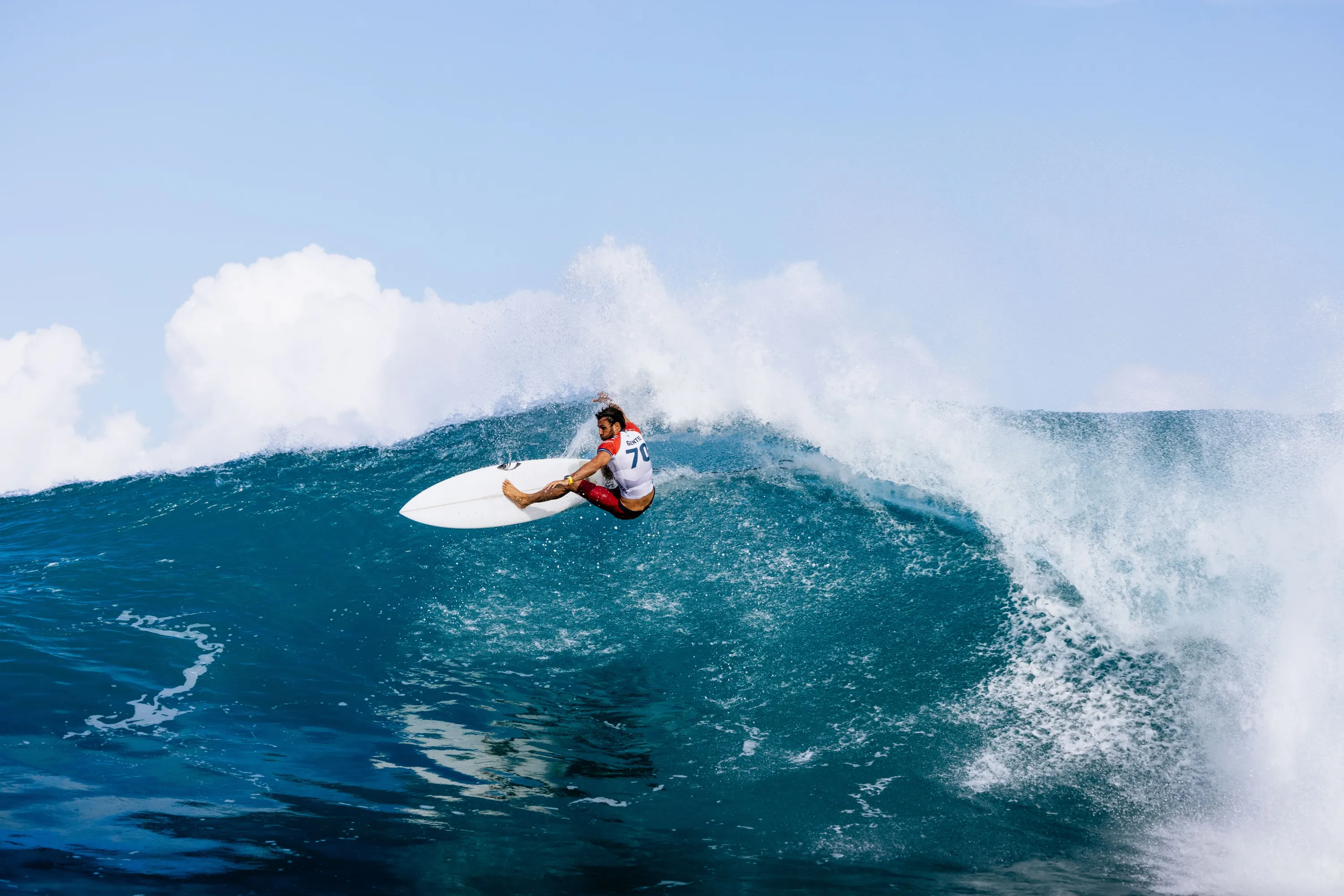 Ian Gentil of Hawaii surfs in Heat 3 of the Round of 32 at the Hurley Pro Sunset Beach on February 16, 2023 at Oahu, Hawaii. (Photo by Brent Bielmann/World Surf League via Getty Images)