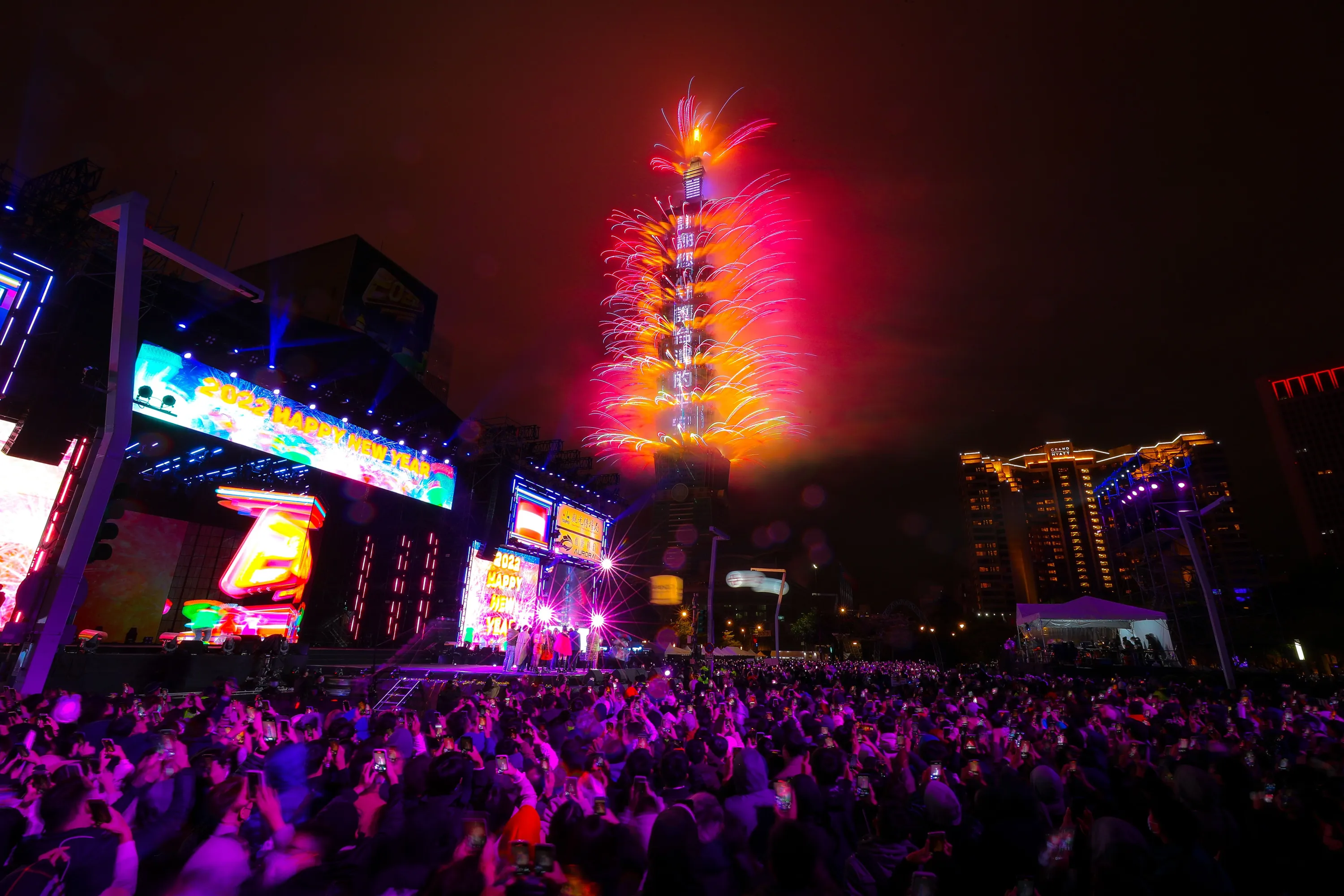Fireworks and light effects illuminate the night sky from the Taipei 101 skyscraper during New Year's celebrations in Taipei, Taiwan, 01 January 2022. (Photo by Ritchie B. Tongo/EPA/EFE)