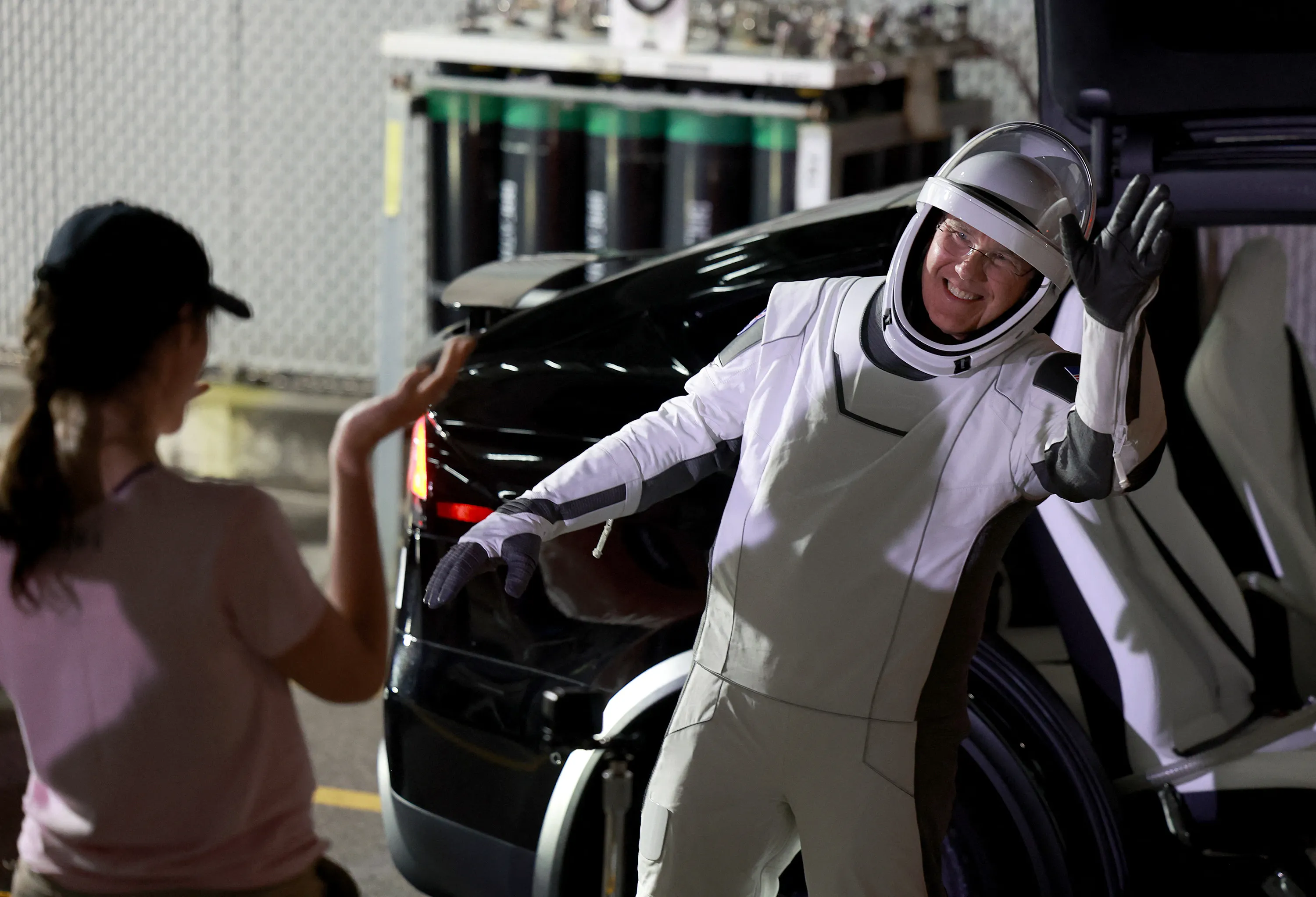 NASA astronaut Stephen Bowen speaks with family members before being driven to the SpaceX Falcon 9 rocket with the Crew Dragon spacecraft for a scheduled launch from pad 39A at the Kennedy Space Center on February 26, 2023 in Cape Canaveral, Florida. Liftoff is scheduled for Monday at 1:45 a.m. to the International Space Station. (Phoot by Joe Raedle/Getty Images/AFP Photo)