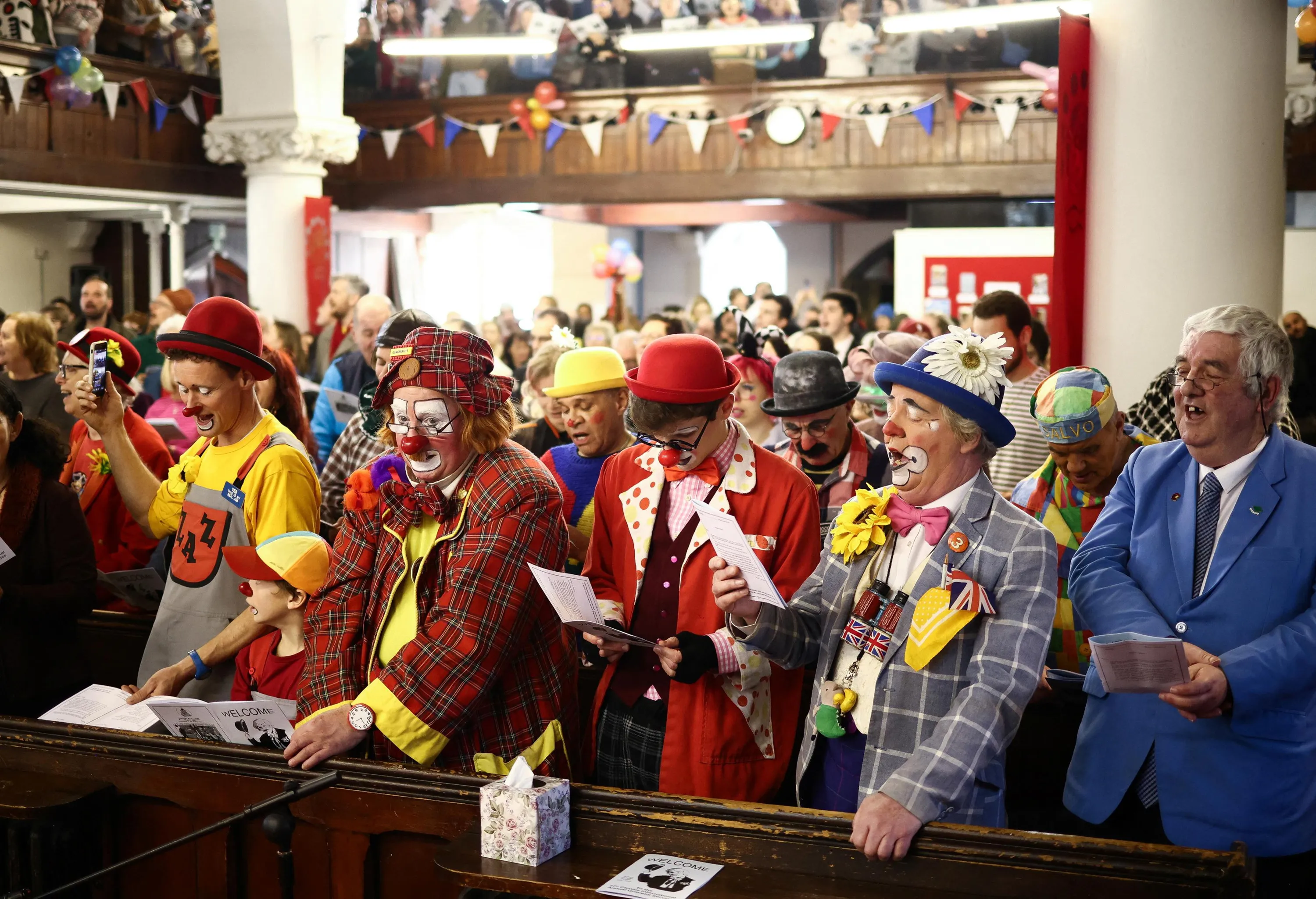 Clowns and entertainers attend the annual service of remembrance in honour of British clown Joseph Grimaldi, at the All Saints Church in Haggerston, London, Britain on February 5, 2023. (Photo by Henry Nicholls/Reuters)
