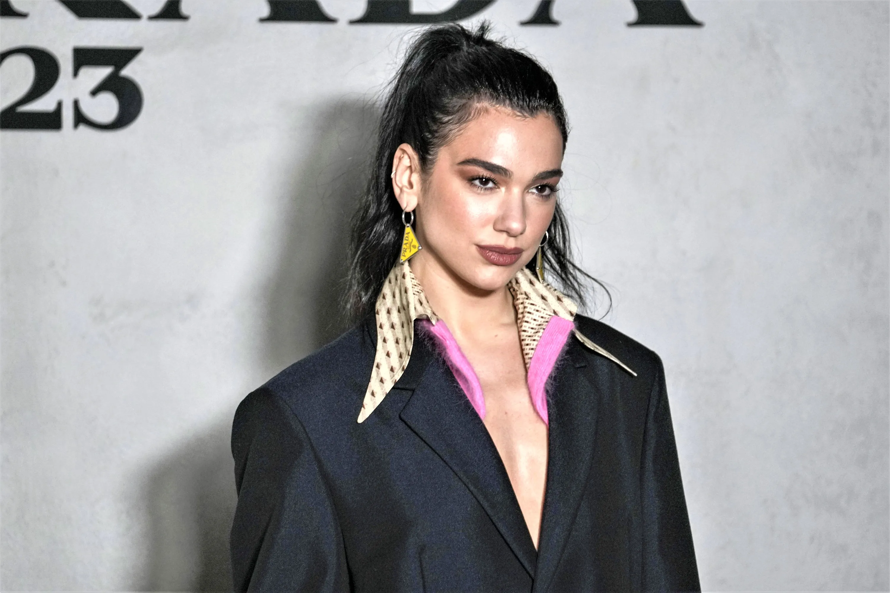 British-Albanian singer Dua Lipa arrives at the Prada women's Fall-Winter 2023-24 collection presented in Milan, Italy, Thursday, February 23, 2023. (Photo by Luca Bruno/AP Photo)
