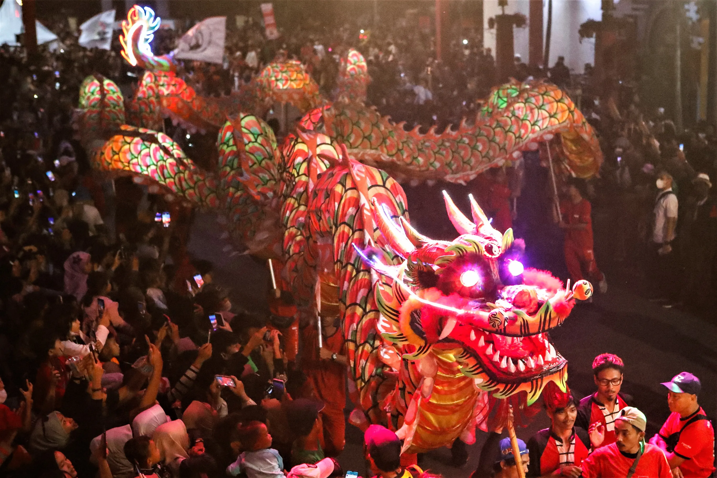 A view of dragon dance performance during the Cap Go Meh festival to mark the end of the Chinese Lunar New Year celebration in Bogor, West Java province, Indonesia on February 5, 2023. (Photo by Ajeng Dinar Ulfiana/Reuters)