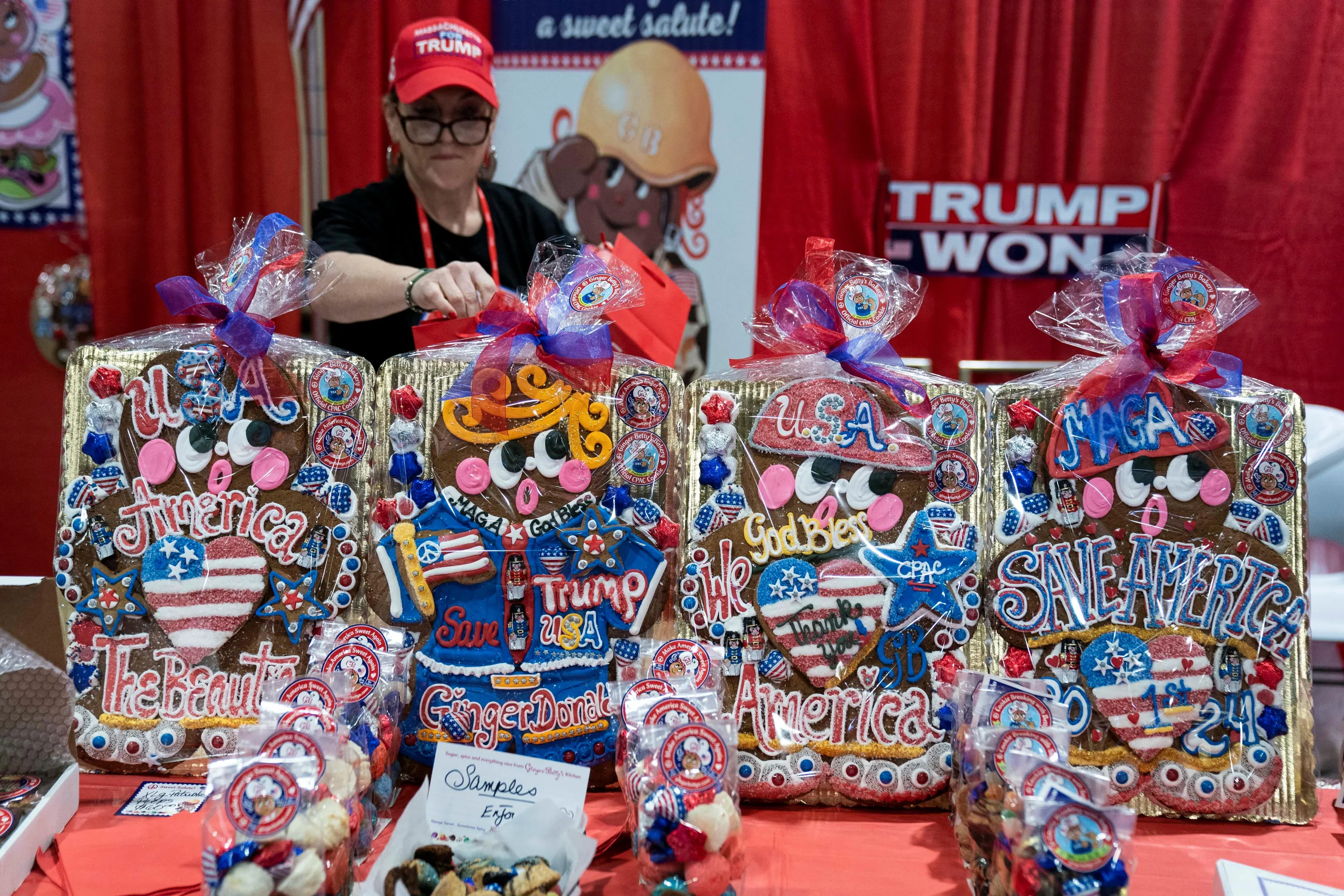 A vendor organizes cookies with symbols in support of former U.S. President Donald Trump at the Conservative Political Action Conference (CPAC) at Gaylord National Convention Center in National Harbor, M.D., March 2, 2023. (Photo by Sarah Silbiger/Reuters)
