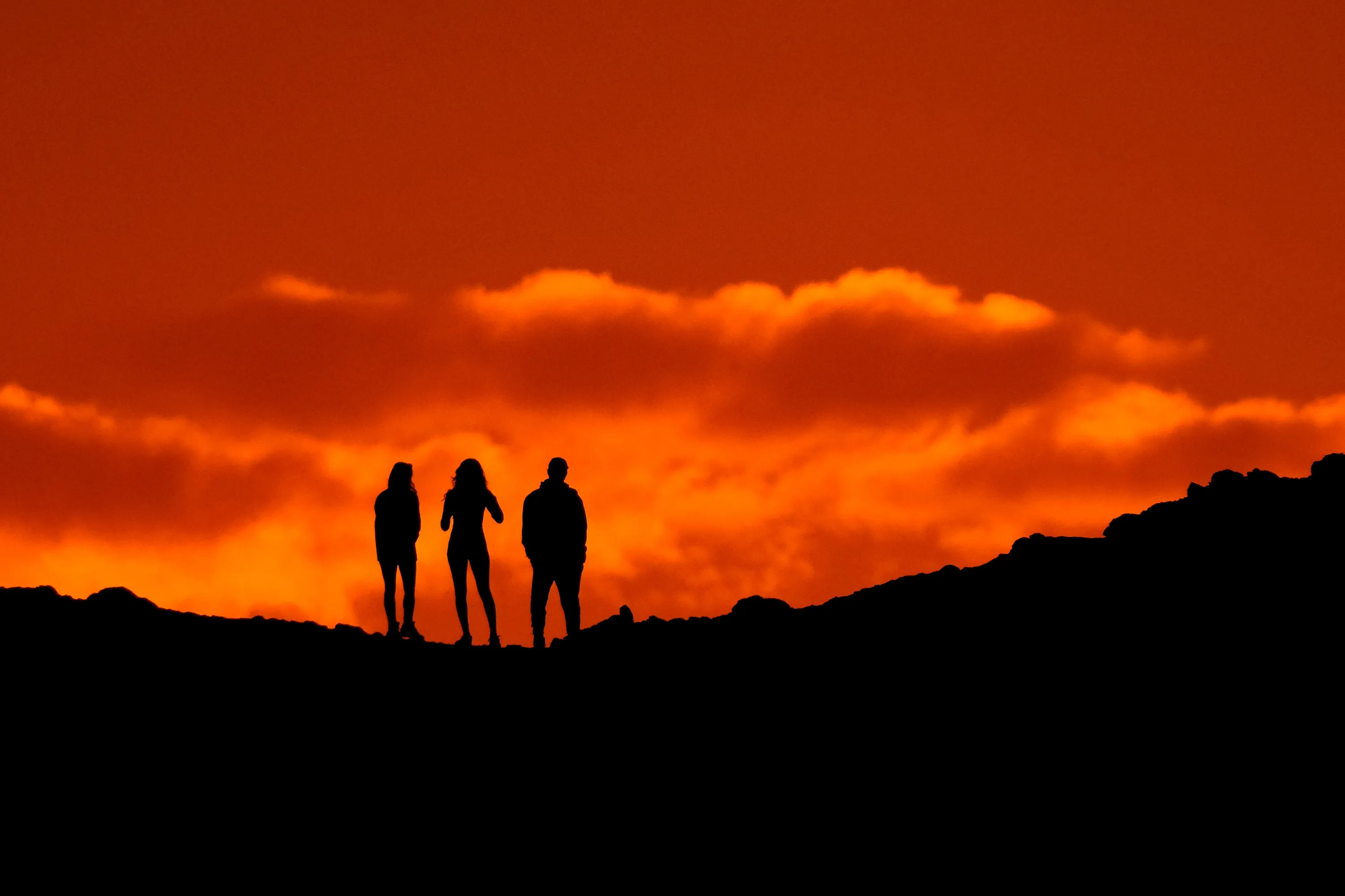 Hikers are silhouetted against the sky as they view the sunset from a ridge at Papago Park, Thursday, March 2, 2023, in Phoenix. (Photo by Charlie Riedel/AP Photo)