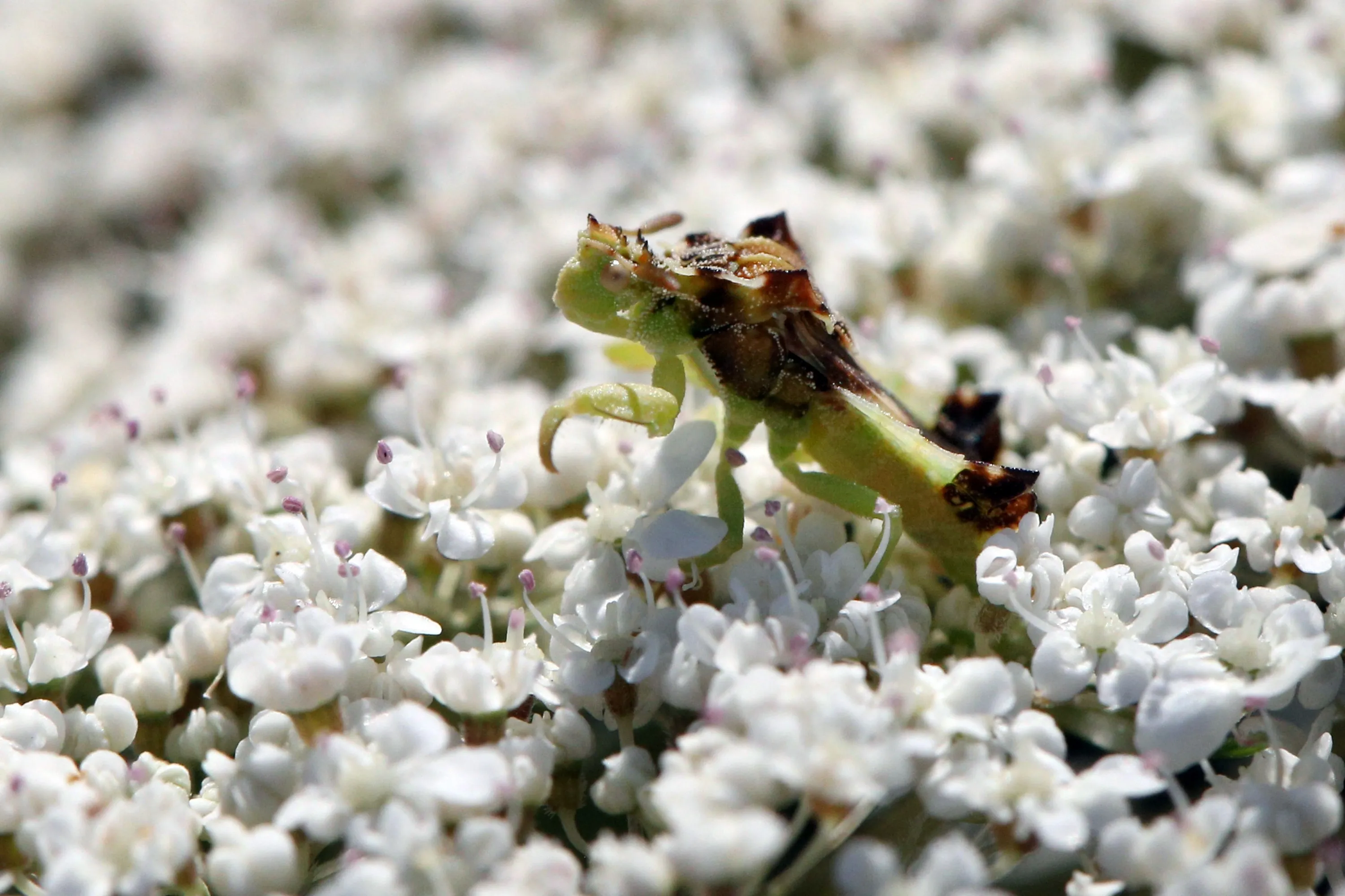 Jagged Ambush Bug (Phymata) waiting for prey on a Queen Anne's Lace (Daucus carota) flower in Toronto, Ontario, Canada on July 22, 2022. (Photo by Creative Touch Imaging Ltd./NurPhoto via Getty Images)