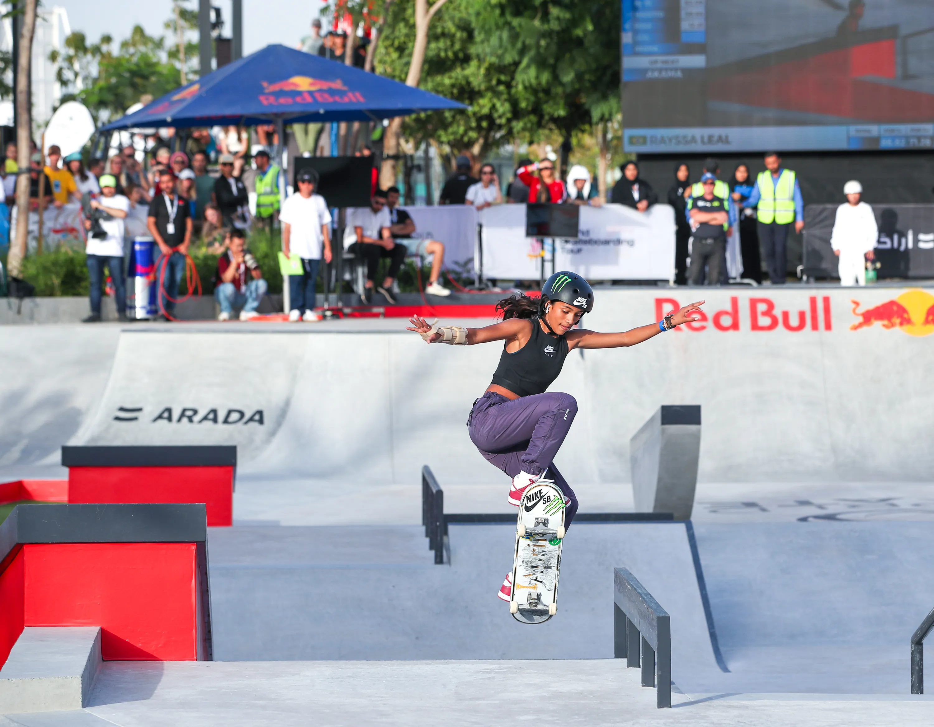 Rayssa Leal in action during the Women's Street Final, 2022 World Skate Championship held at the Aljada Skate Park in Sharjah, United Arab Emirates on February 5, 2023. (Photo by Victor Besa/The National)