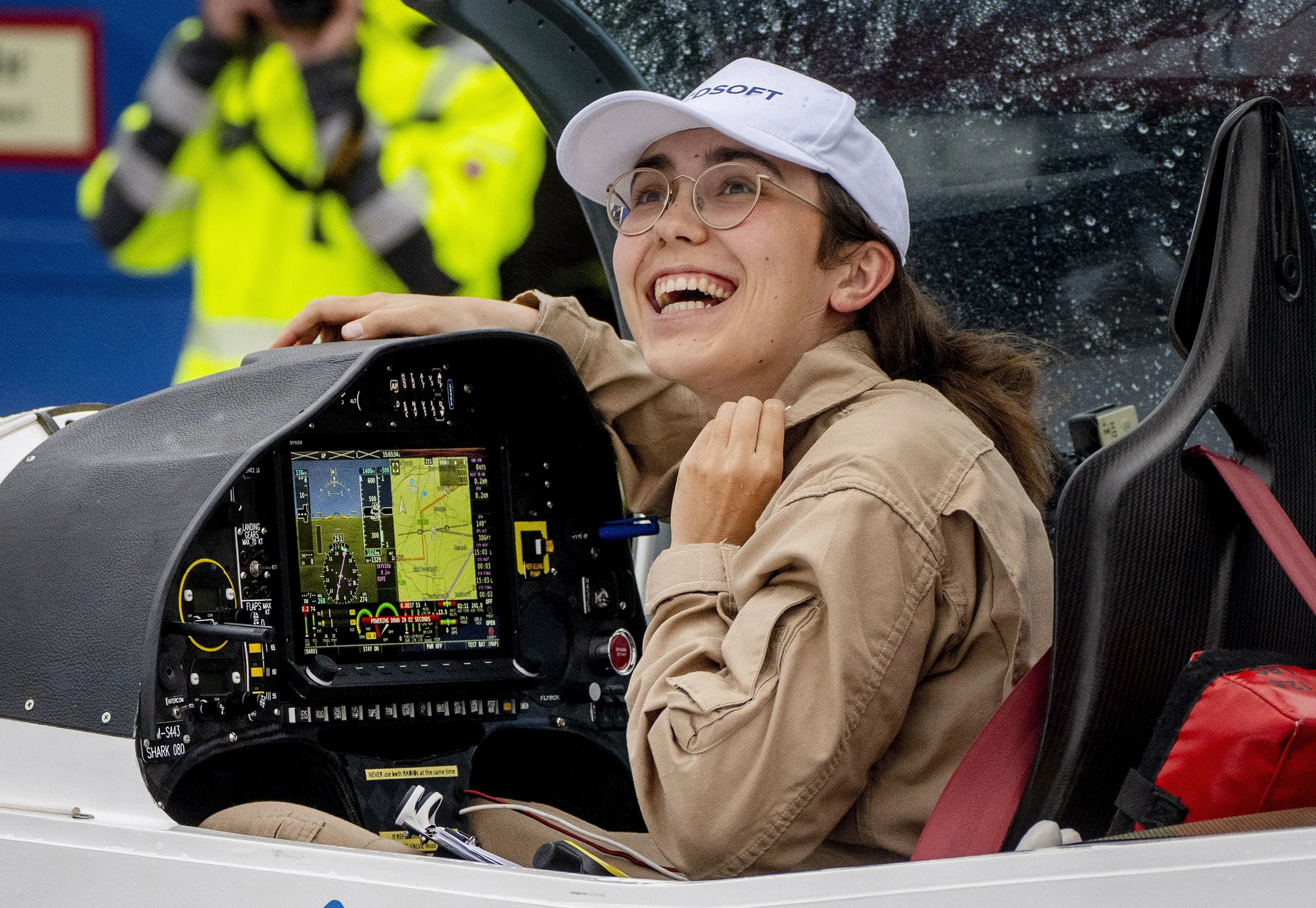 Belgium-British teenage pilot Zara Rutherford smiles after she landed with her Shark ultralight plane at the Egelsbach airport in Frankfurt, Germany, Wednesday, January 19, 2022. At the age of 19, she is set to land her single-seater Shark sport aircraft in Kortrijk, Belgium, on Monday, more than 150 days after setting out to become the youngest woman to circumnavigate the world solo. American aviator Shaesta Waiz was 30 when she set the previous benchmark. (Photo by Michael Probst/AP Photo)