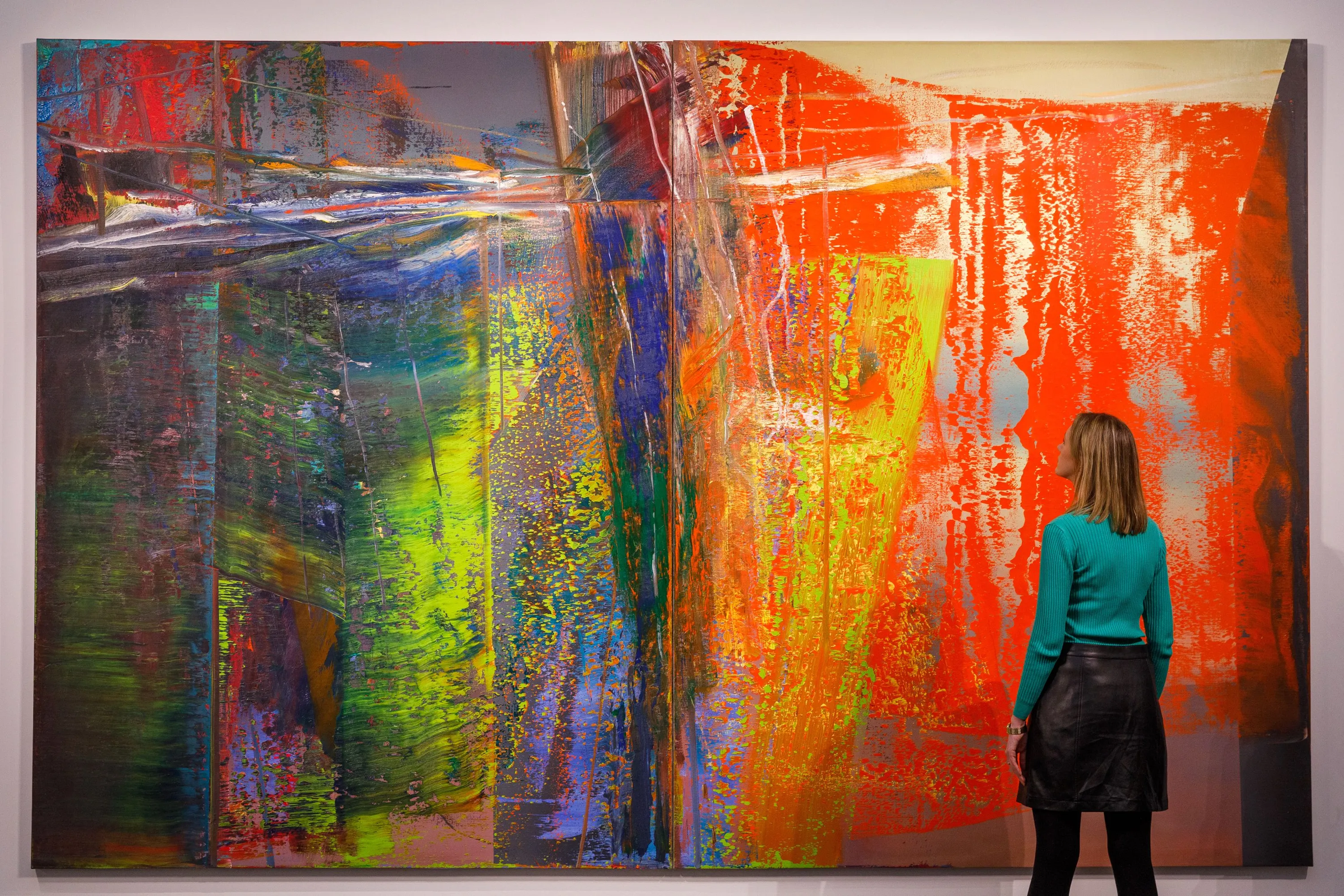 Gerhard Richter’s “Abstraktes Bild” (estimated in excess of £20 million), one of the artist’s greatest monumental abstract masterpieces, one of the most important works by the artist ever to appear at auction, goes on view as part of an exhibition of modern and contemporary artworks at Sotheby's on February 22, 2023 in London, England. The Modern & Contemporary Evening Auction takes place at Sotheby's in London on 1 March 2023. (Photo by Tristan Fewings/Getty Images for Sotheby's)