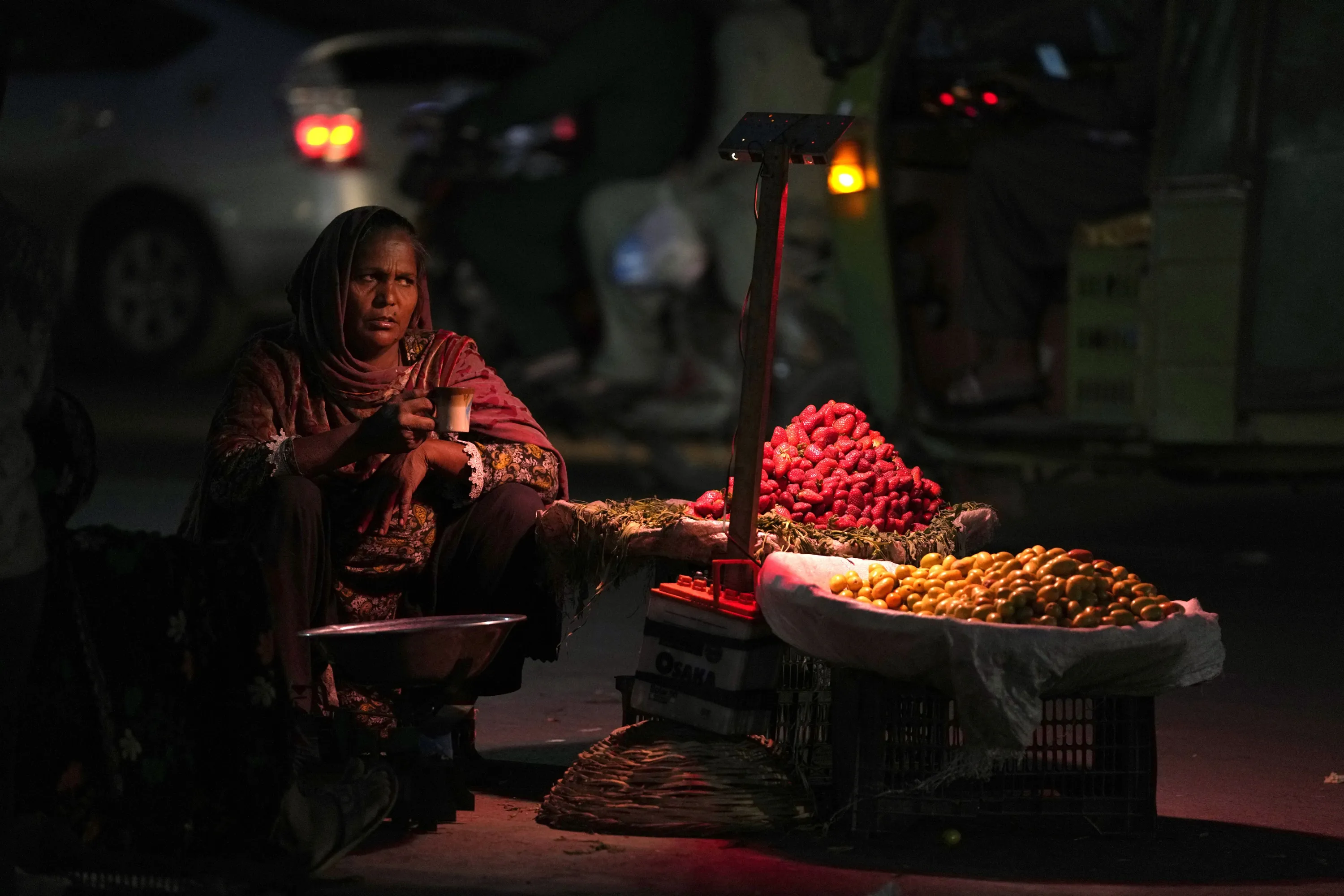 A woman, who sells fruit to earn a living for her family, waits for customers along roadside, in Lahore, Pakistan, Tuesday, March 7, 2023. Pakistan is observing the International Women's Day with other nations. (Photo by K.M. Chaudary/AP Photo)