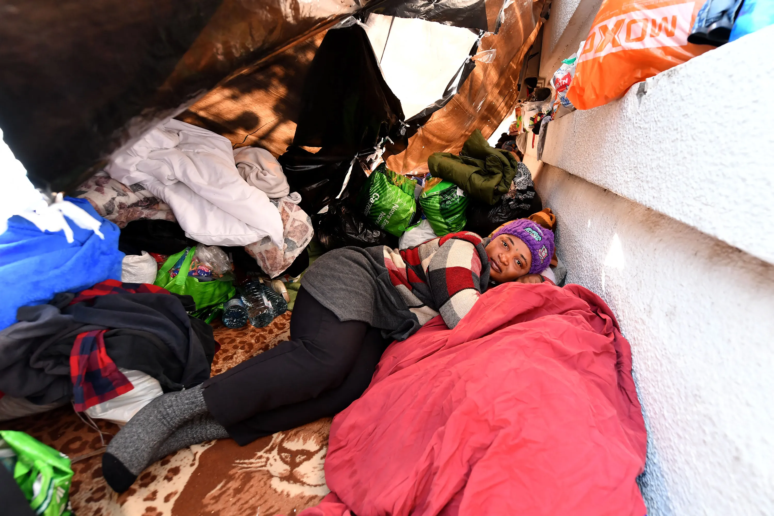 Sub-Saharan African migrants camp outside the headquarters of the International Organisation for Migration (IOM) in Tunis, on March 2, 2023. After President Kais Saied ordered “urgent measures” against irregular sub-Saharan migrants, hundreds of West Africans, evicted in recent days by landlords fearing heavy fines for hosting undocumented migrants, have flocked to their embassies in Tunis to seek repatriation. (Photo by Fethi Belaid/AFP Photo)