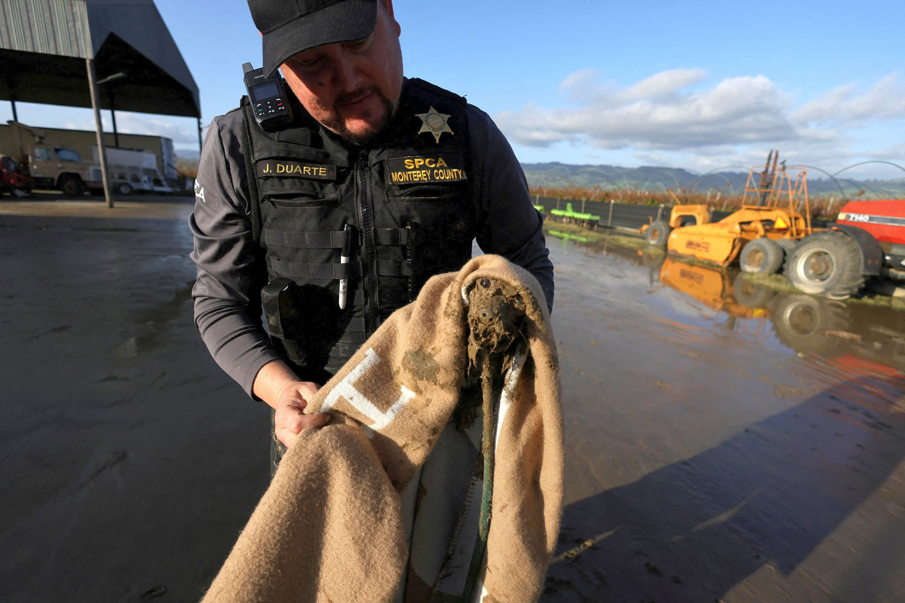 An SPCA (Society for the Prevention of Cruelty to Animals) worker rescues an abandoned dog as floodwaters from the Pajaro River inundate residents after days of heavy rain in Pajaro, California, U.S., March 15, 2023. (Photo by David Swanson/Reuters)