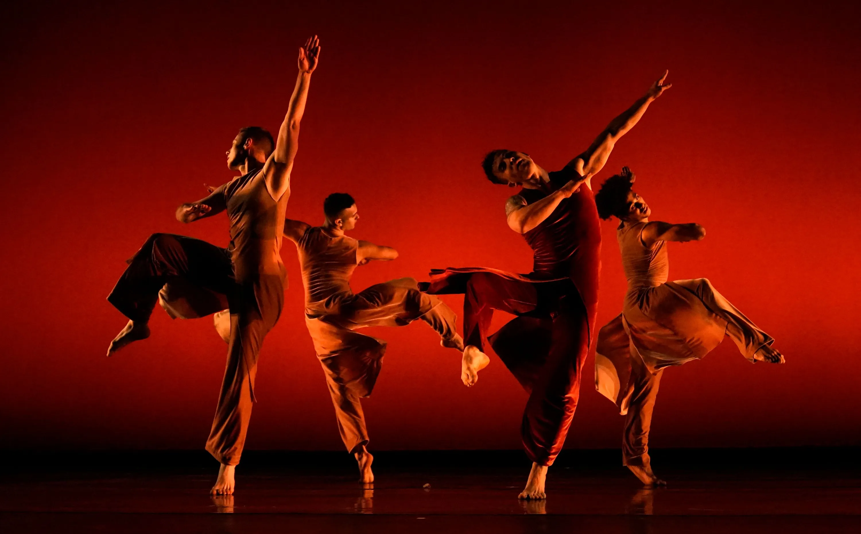 Dancers from Parsons Dance, a contemporary dance company founded by choreographer David Parsons, perform a scene from "Swing Shift" during a dress rehearsal before opening night at The Joyce Theater in New York on March 15, 2023. (Photo by Timothy A. Clary/AFP Photo)