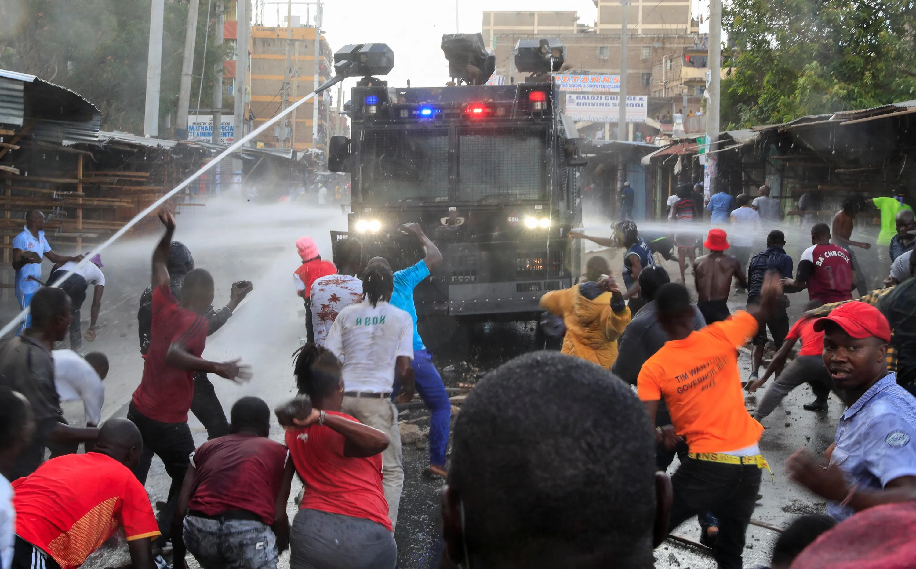 Riot police use water cannons as they clash with supporters of Kenya's opposition leader Raila Odinga of the Azimio La Umoja (Declaration of Unity) One Kenya Alliance, as they participate in a nationwide protest over cost of living and President William Ruto's government in Eastleigh neighbourhood of Nairobi, Kenya on March 20, 2023. (Photo by Thomas Mukoya/Reuters)