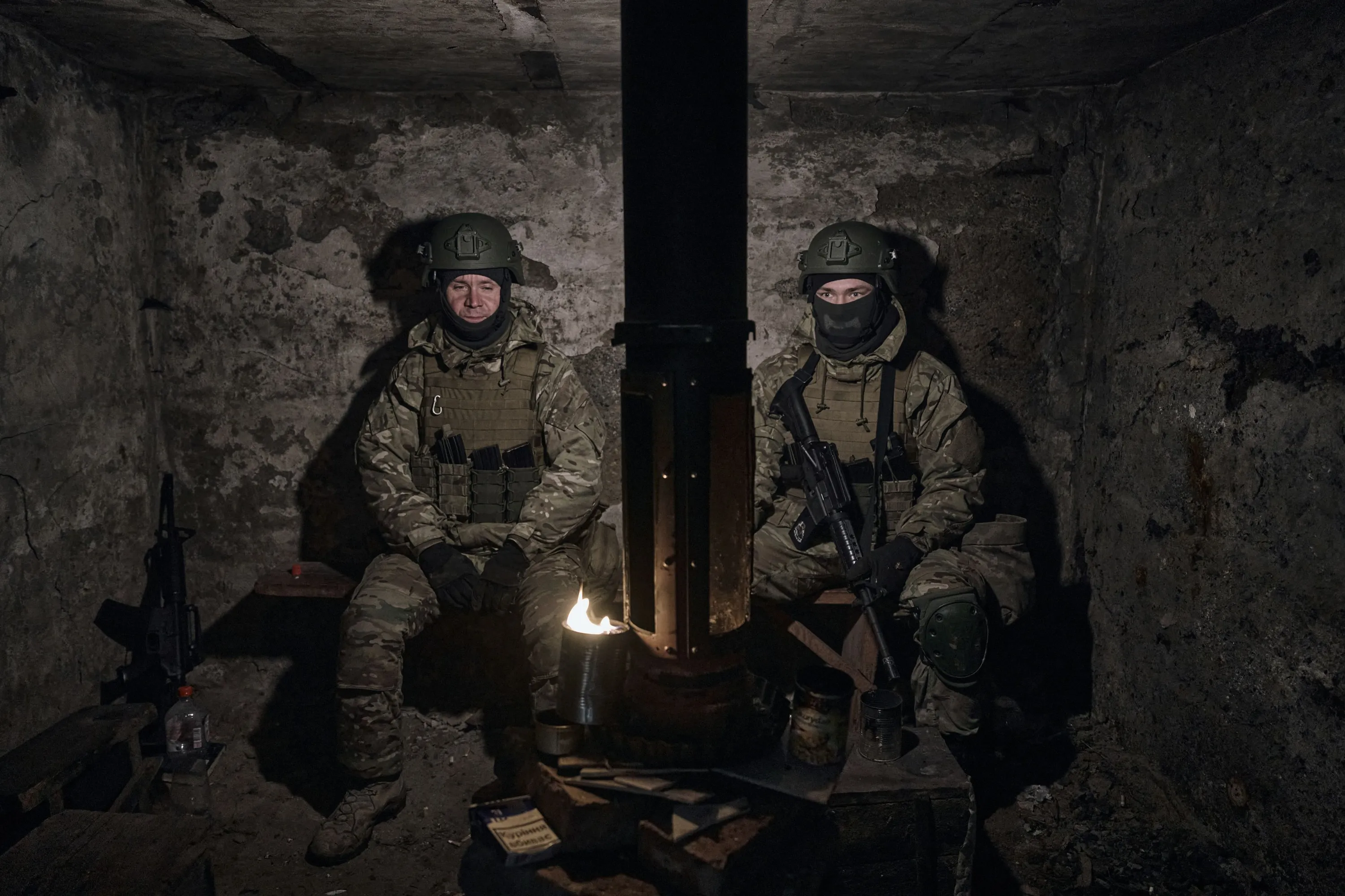 Volunteer soldiers rest in a shelter on their positions close to Bakhmut, Donetsk region, Ukraine, Wednesday, March 8, 2023. (Photo by Libkos/AP Photo)