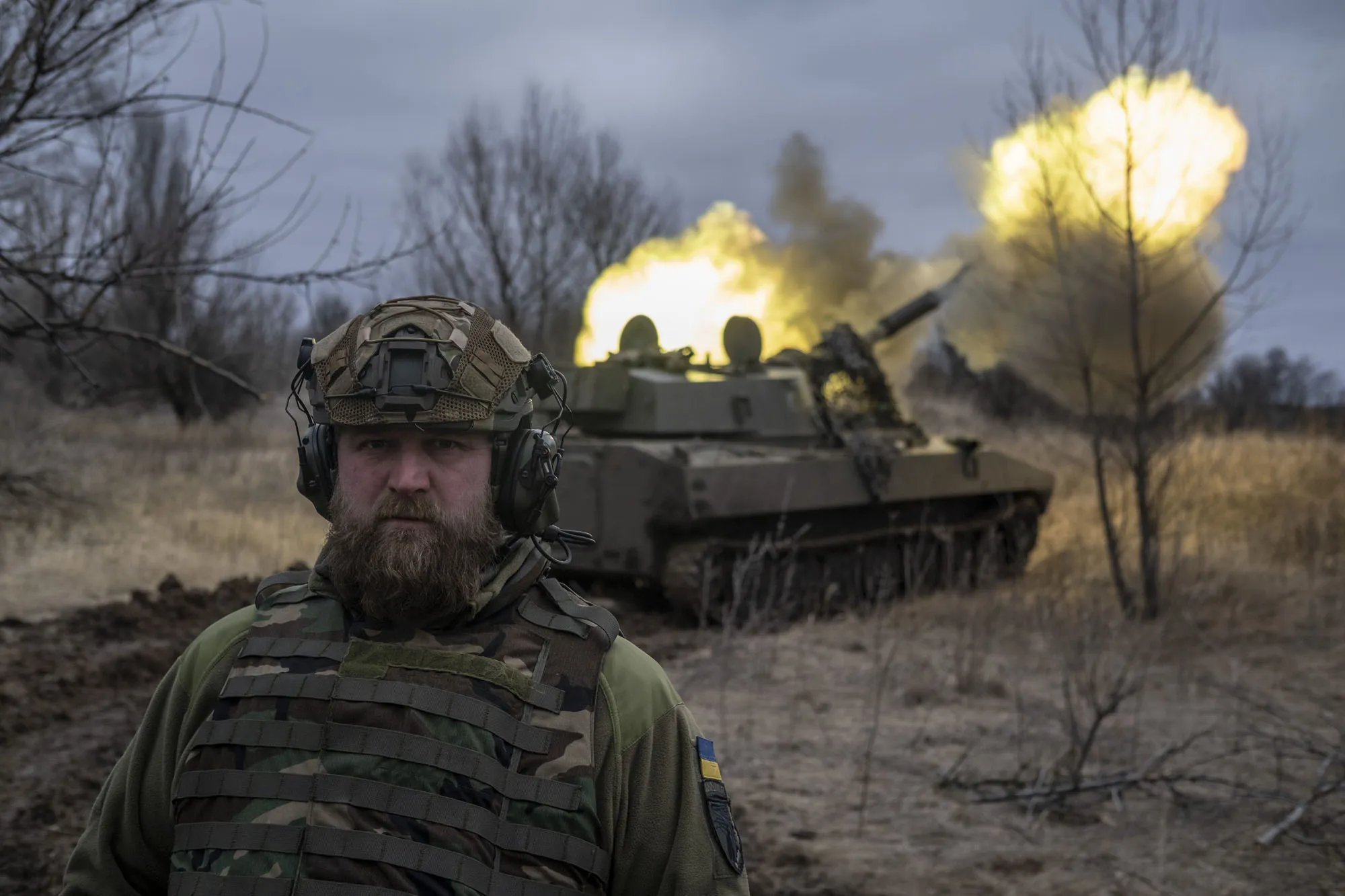 A self-propelled artillery vehicle fires on the frontline, Donetsk region, Ukraine, Thursday, March 2, 2023.(Photo by Iryna Rybakova/AP Photo)