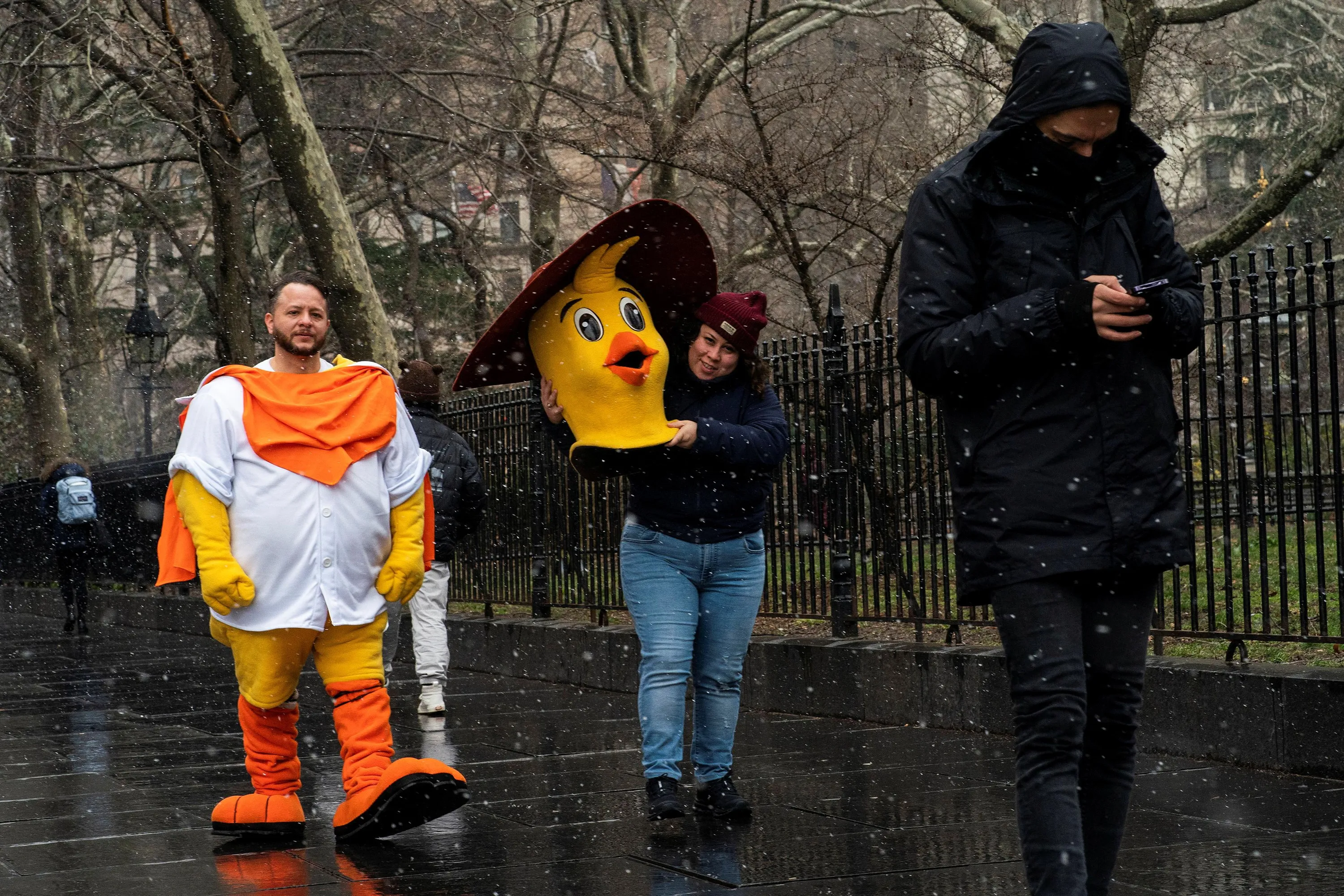 People make their way under the snow in New York City, U.S., March 14, 2023. (Photo by Eduardo Munoz/Reuters)