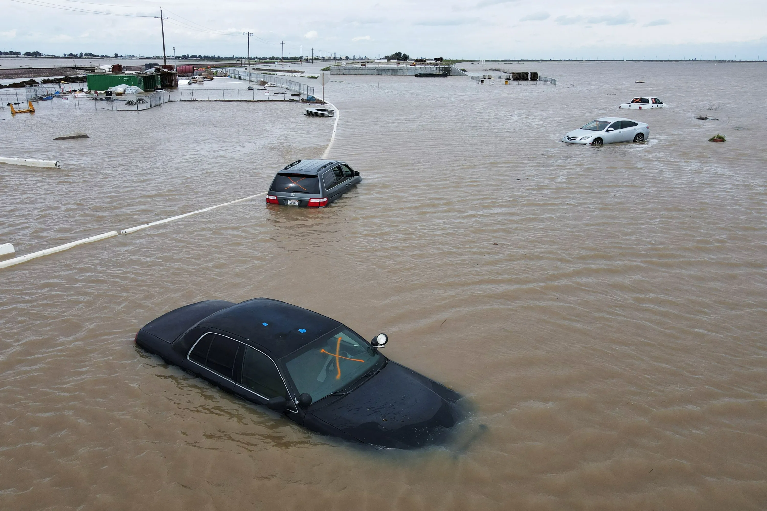 Car sit abandoned on roads as floodwaters from the Tule River inundate the area after days of heavy rain in Corcoran, California, U.S., March 21, 2023. (Photo by David Swanson/Reuters)