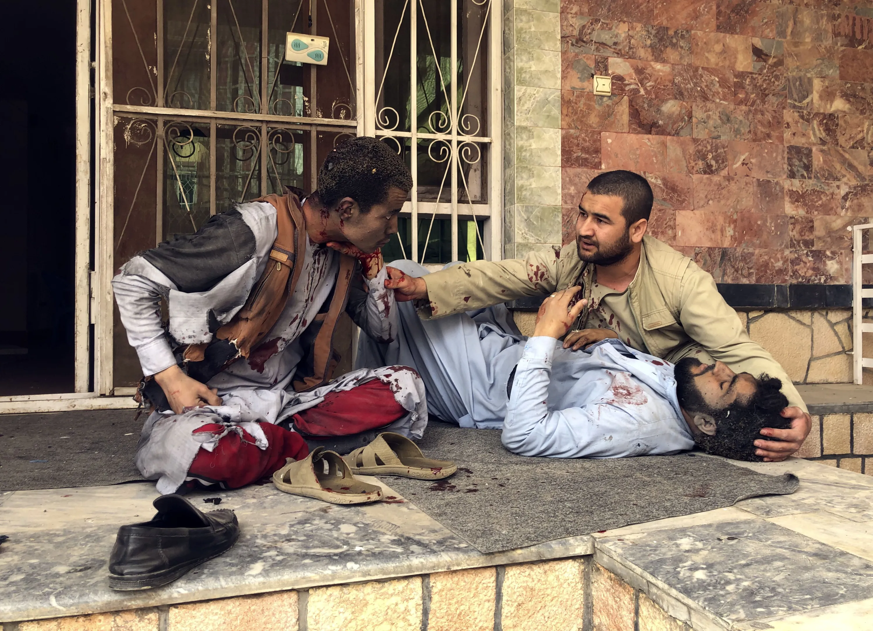 An injured man lies down after a bomb blast in Mazar-e-Sharif, the capital city of Balkh province, in northern Afghanistan, Saturday, March 11, 2023. (Photo by Abdul Saboor Sirat/AP Photo)