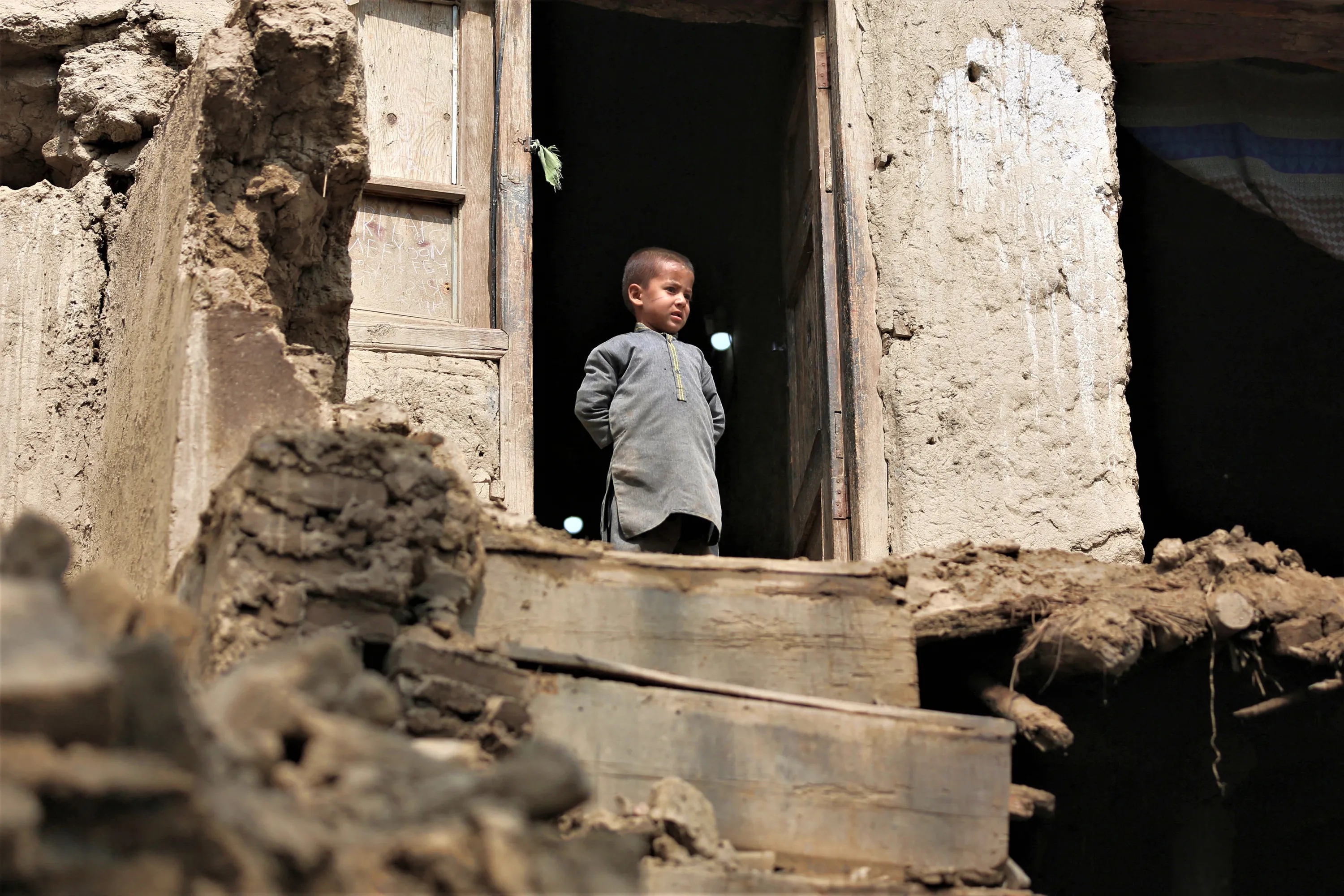 A boy looks out from his damaged home in Miya village, in Alishing District of Laghman Province on March 22, 2023, following an overnight earthquake. At least 13 people were killed in Afghanistan and Pakistan by a strong earthquake felt across thousands of kilometres, but the region appeared on March 22 to have dodged the mass casualties usually associated with a tremor of such scale. (Photo by Shafiullah Kakar/AFP Photo)
