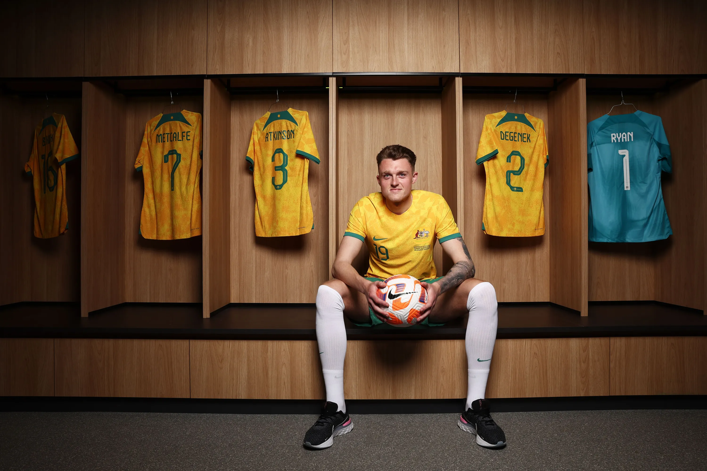 Professional footballer who plays as a centre-back for Premier League club Leicester City and the Australia national team Harry Souttar poses during a Socceroos Media Opportunity at Accor Stadium on March 23, 2023 in Sydney, Australia. (Photo by Matt King/Getty Images)