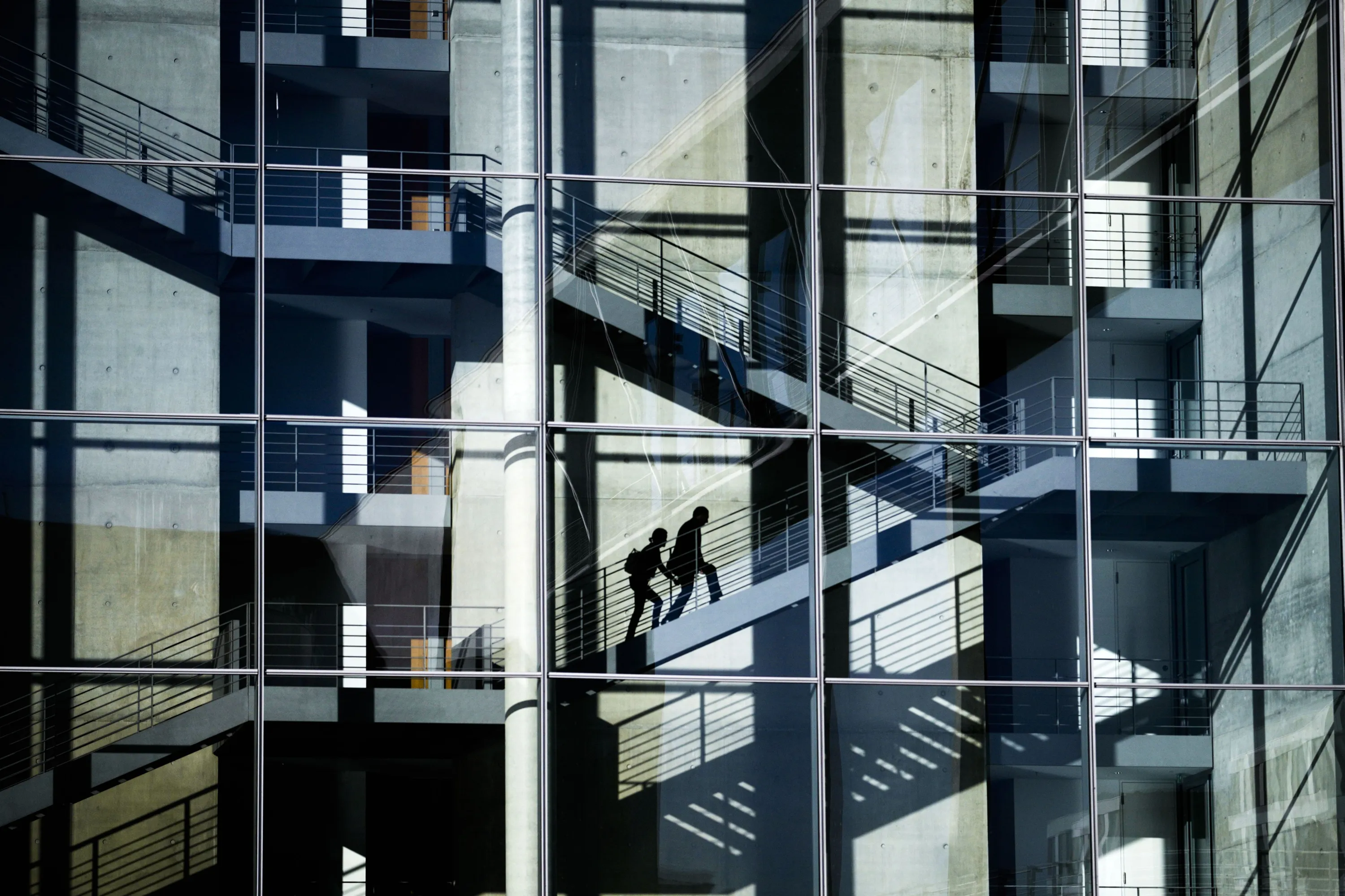 People climb a flight of stairs at the Paul-Loebe-Haus, an office building of the German parliament Bundestag on a sunny morning, in Berlin, Germany, Wednesday, March 1, 2023. (Photo by Markus Schreiber/AP Photo)