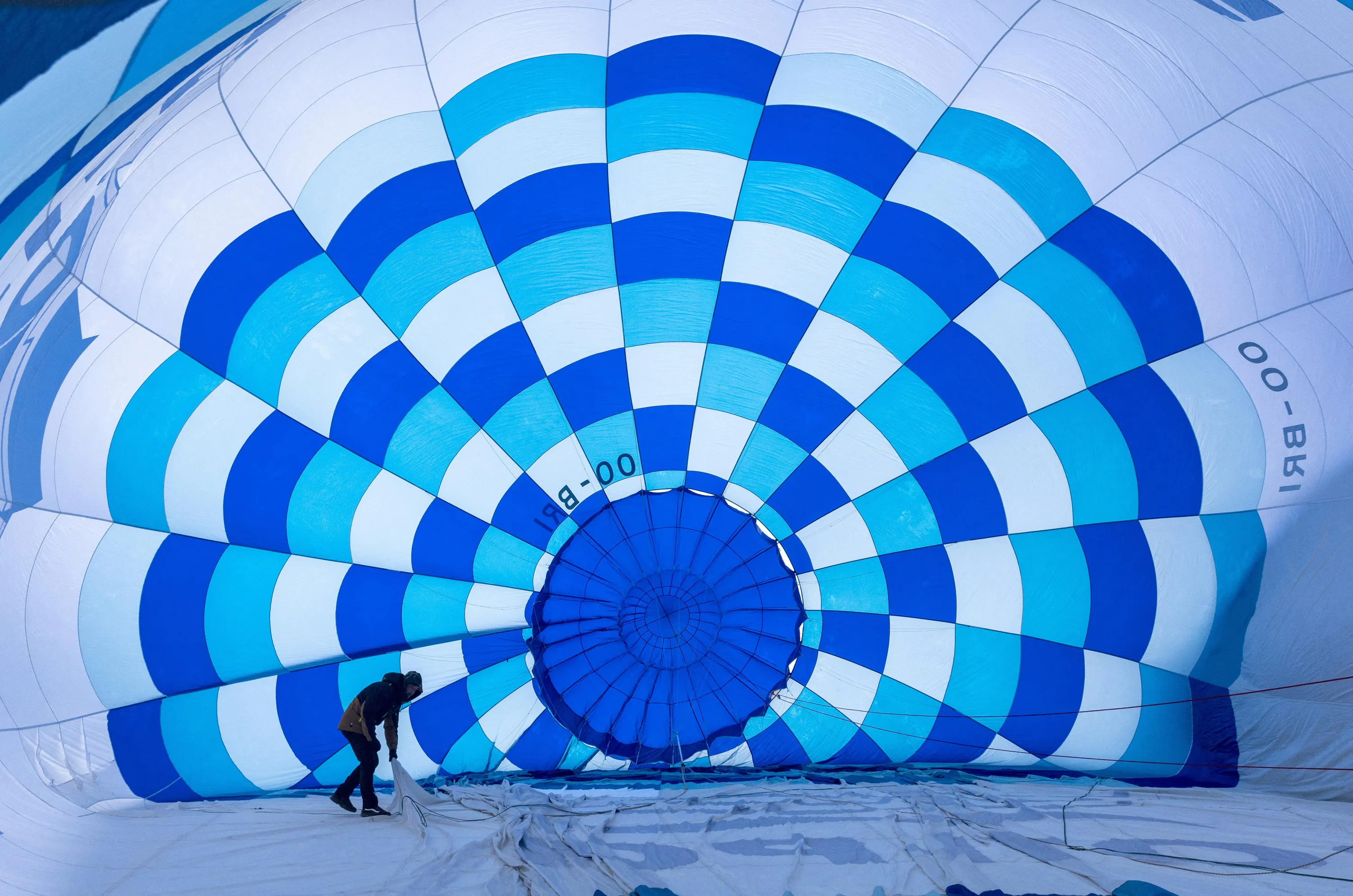 A participant prepares a balloon during the 43rd International Hot Air Balloon Festival in Chateau-d'Oex, Switzerland on January 24, 2023. (Photo by Denis Balibouse/Reuters)