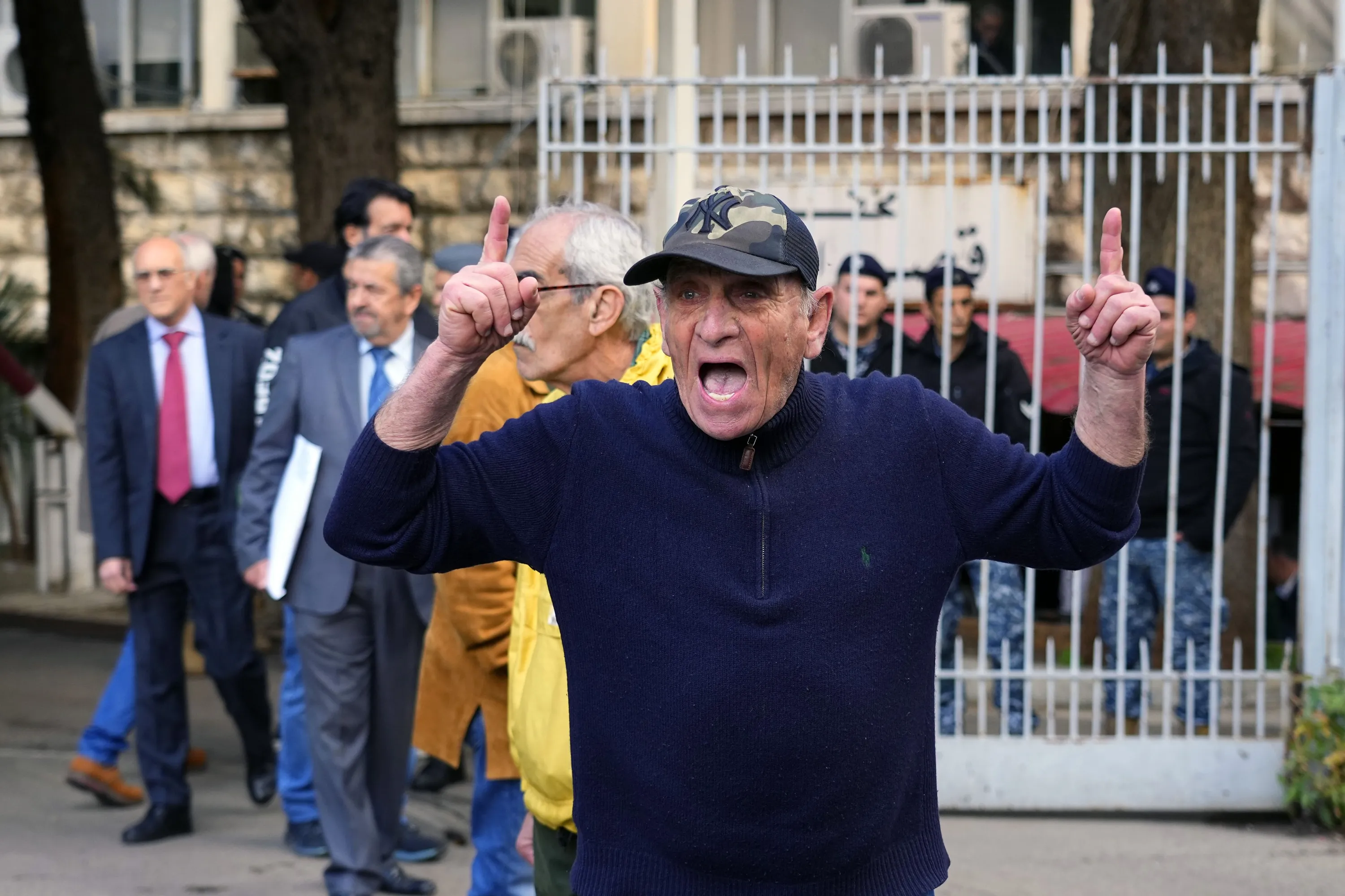 A Lebanese man chants slogans against Riad Salameh, Lebanon's Central Bank governor, in front of the Justice Palace in Beirut, Lebanon, Thursday, March 16, 2023. Lebanon's embattled Central Bank chief appeared Thursday for questioning for the first time before a European legal team visiting Beirut in a money-laundering probe linked to the governor. (Photo by Bilal Hussein/AP Photo)
