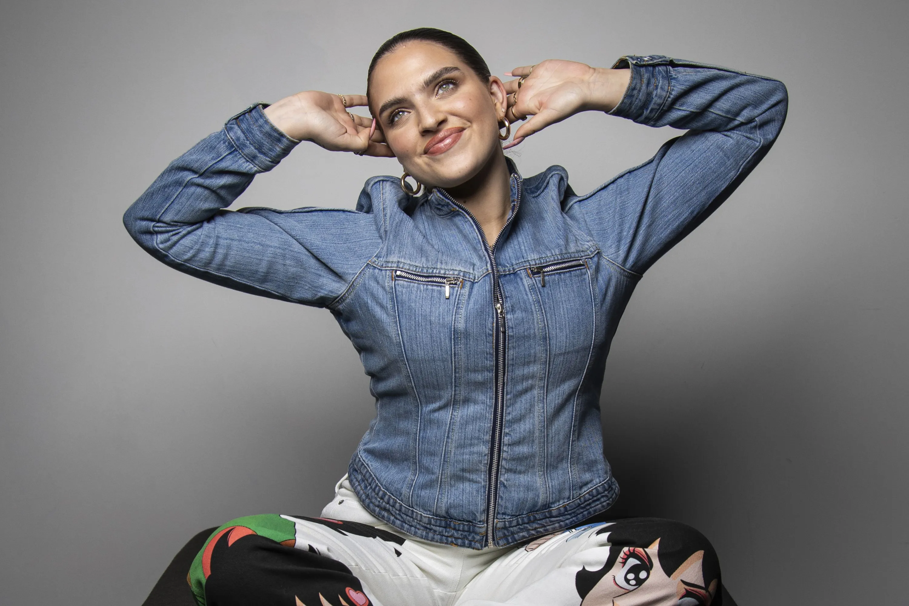 English singer-songwriter Mae Muller, representing the United Kingdom in the Eurovision Song Contest poses for a photographer, in London Tuesday, March 14, 2023. (Photo by Vianney Le Caer/Invision/AP)
