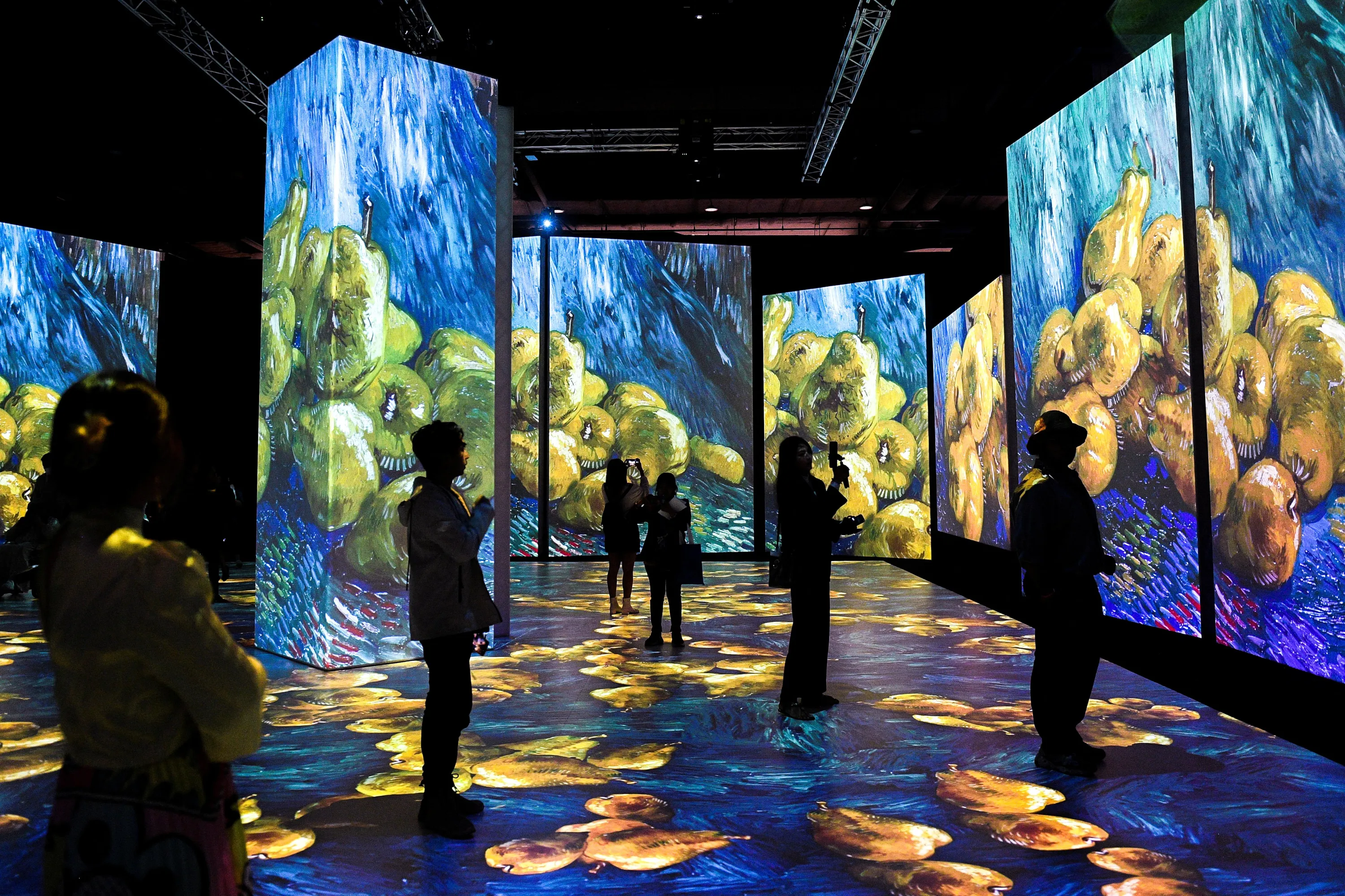 People visit “Van Gogh: The Immersive Experience”, a multi-sensorial exhibition featuring artworks of renowned artist Vincent van Gogh at a department store in Bangkok, Thailand on March 30, 2023. (Photo by Chalinee Thirasupa/Reuters)