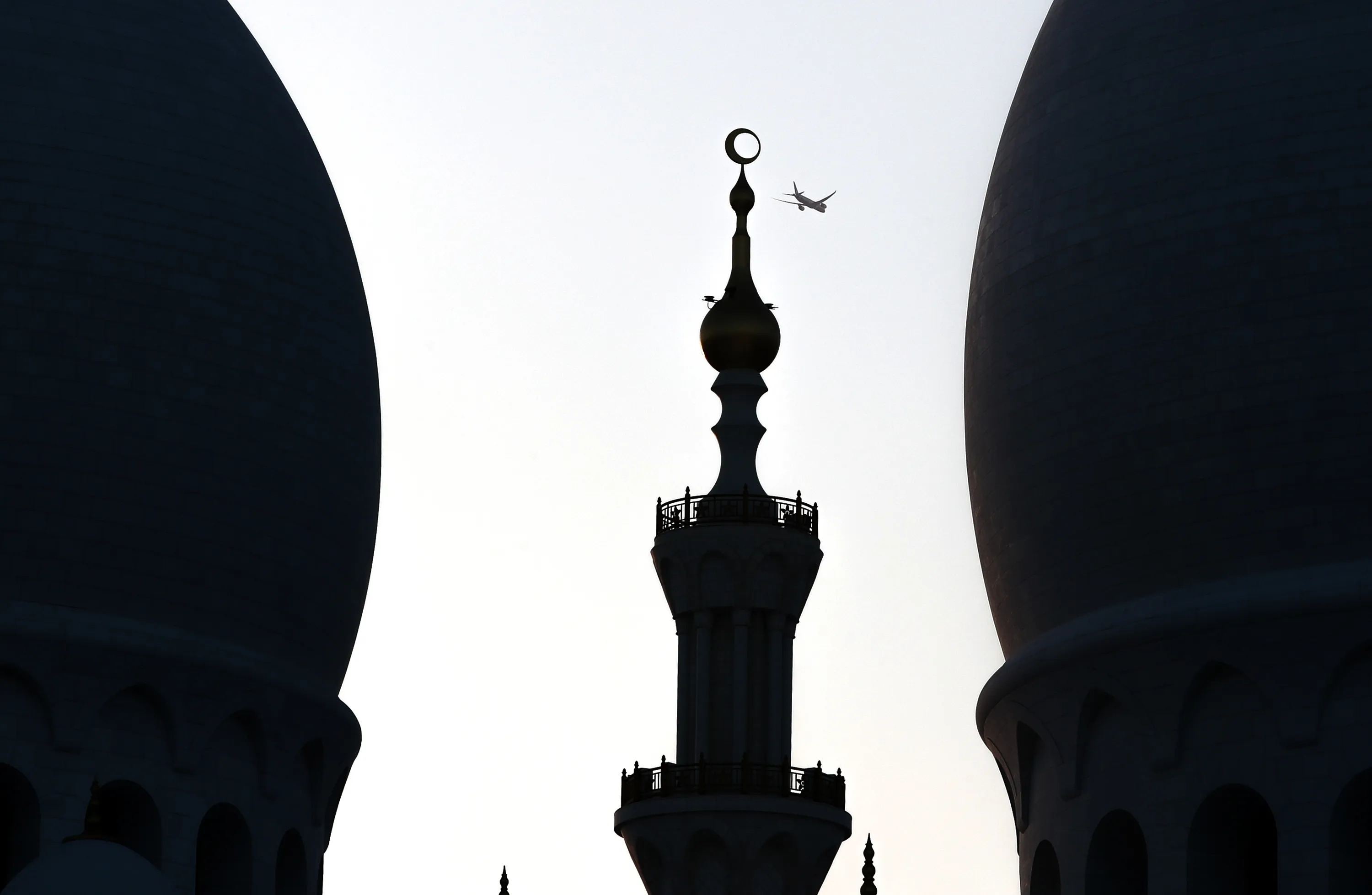 Abu Dhabi's Sheikh Zayed Grand Mosque at sunrise on April 3, 2023. (Photo by Victor Besa/The National)
