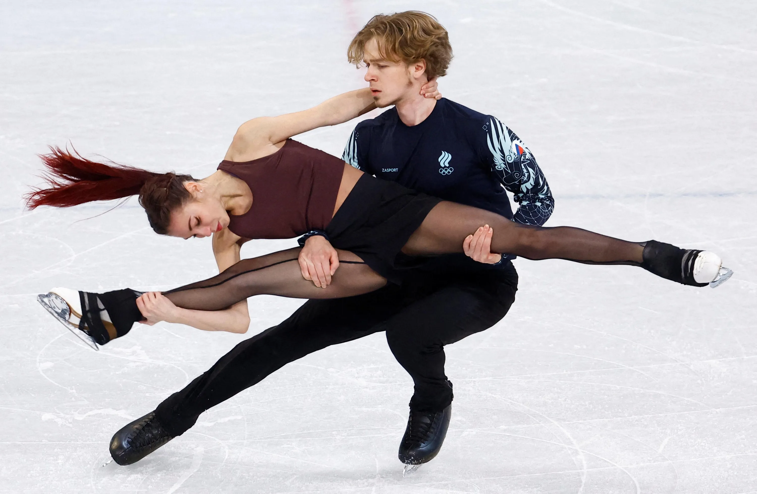 Diana Davis and Gleb Smoklin of the Russian Olympic Committee during training for figure skating at the Capital Indoor Stadium in Beijing, China on February 3, 2022. (Photo by Evgenia Novozhenina/Reuters)