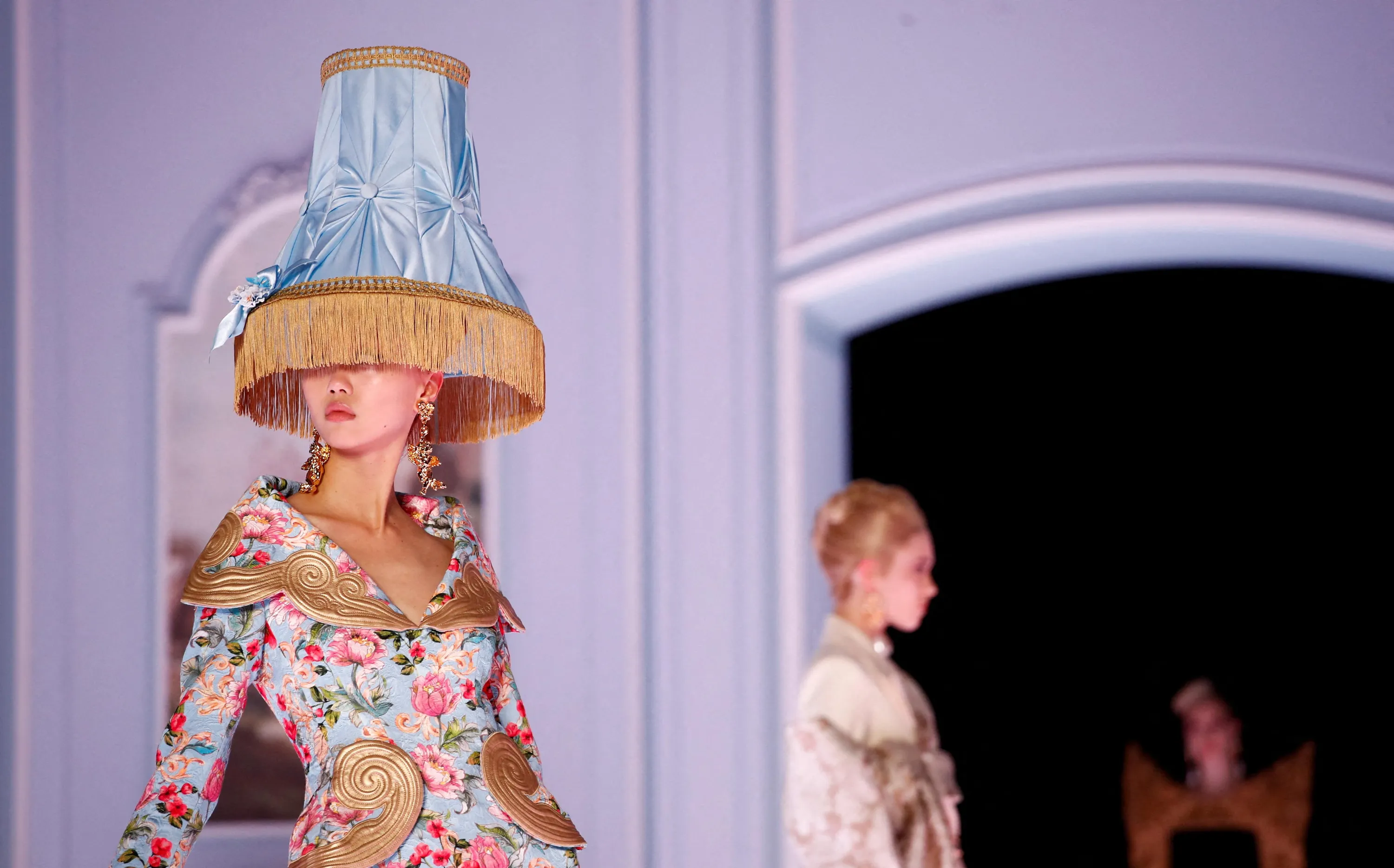 A model presents a creation from the Moschino Fall-Winter 2022/2023 collection during Fashion Week in Milan, Italy, February 24, 2022. (Photo by Alessandro Garofalo/Reuters)