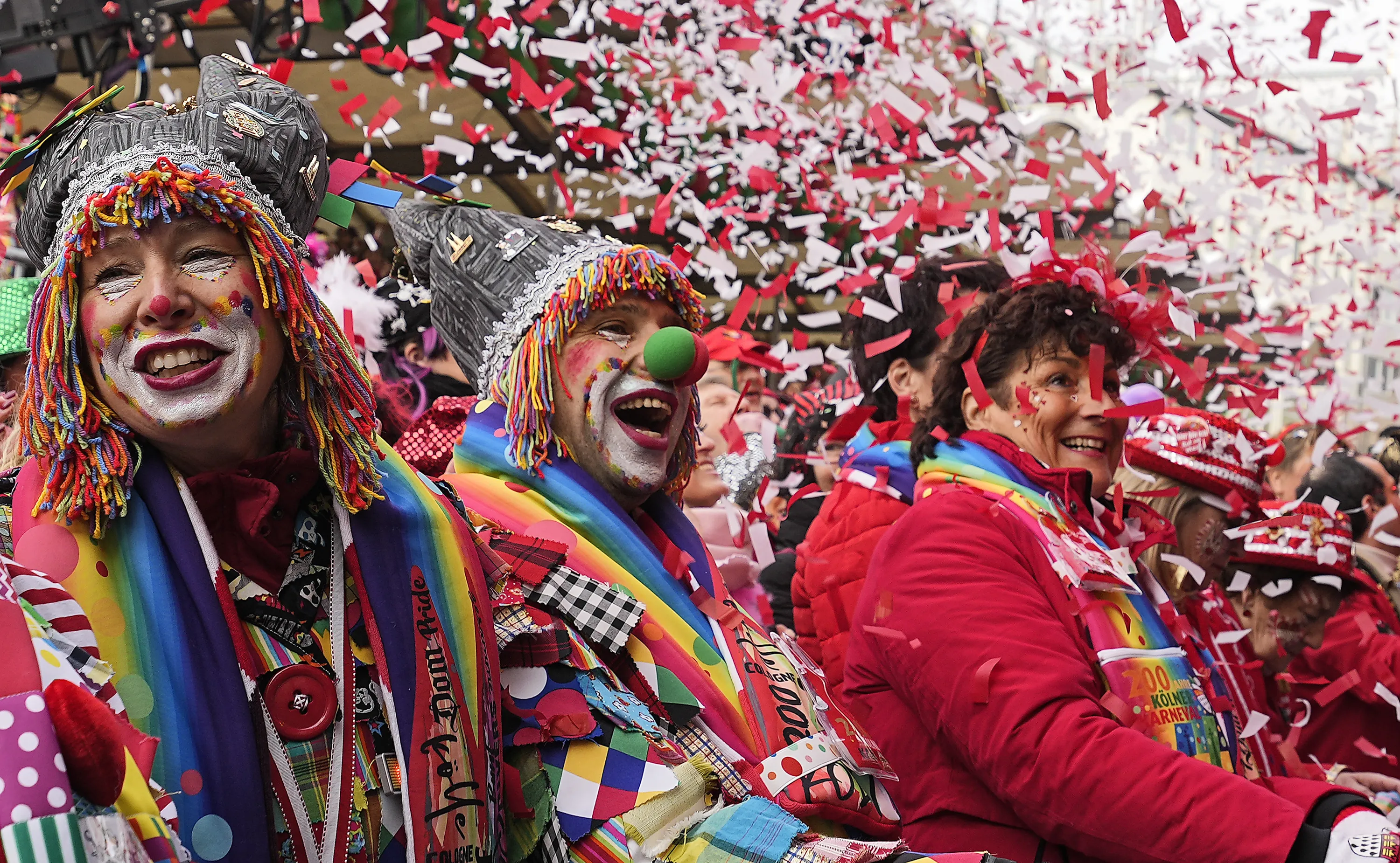 Revellers celebrate at the traditional Alter Markt the start of the street carnival in Cologne, Germany, Thursday, February 16, 2023. Hundreds of thousands will celebrate the carnival without any coronavirus restrictions in the streets of the German carnival capital. (Photo by Martin Meissner/AP Photo)