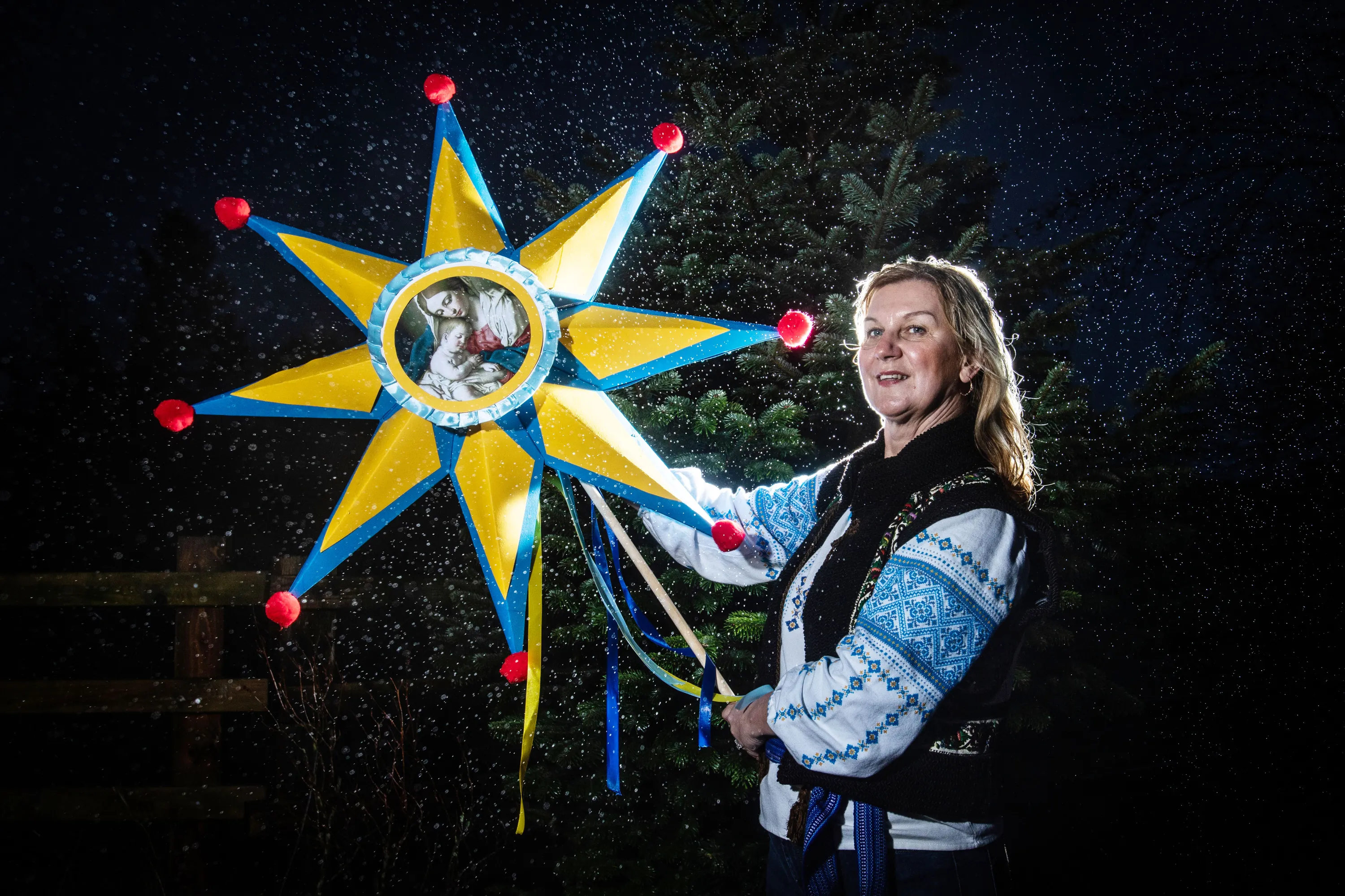 Holding a traditional Ukrainian Christmas star, Ukrainians living in Swansea, Wales prepare to celebrate Christmas on January 7, 2023. Traditionally, Ukrainians have celebrated Christmas Day on January 7th following the Julian calendar. (Photo by Joann Randles/Cover Images)