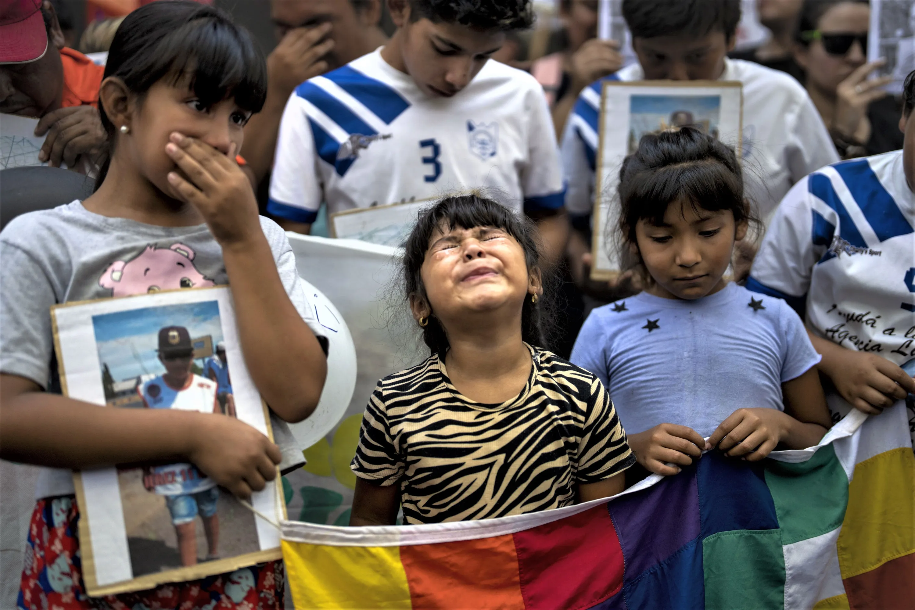 Emma Jerez cries as she attends a march demanding justice after the murder of Maximo Jerez, her 11-year-old cousin killed the previous weekend when a gunman attacked a birthday party, in Rosario, Argentina, Friday, March 10, 2023. (Photo by Rodrigo Abd/AP Photo)