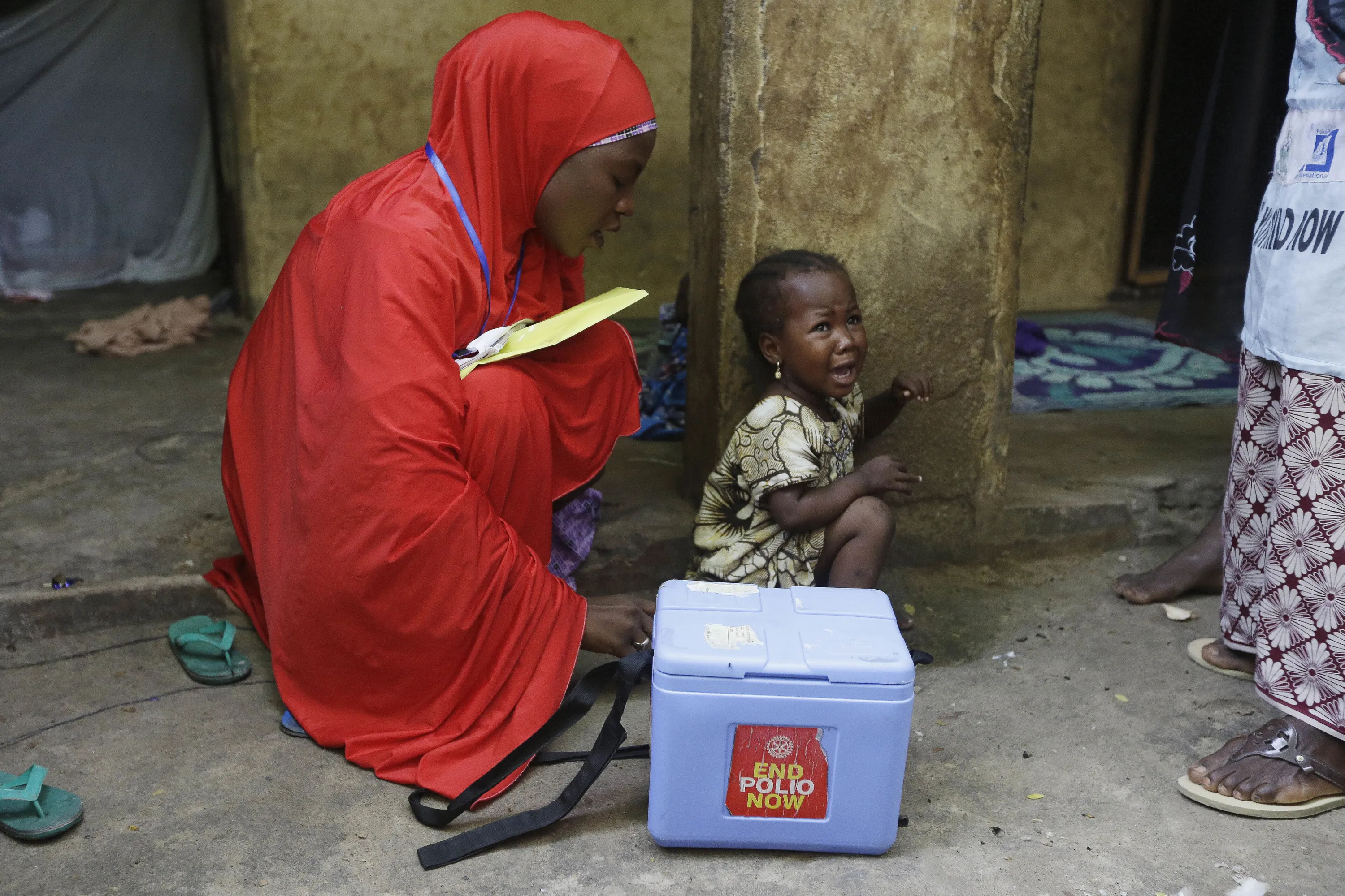 A child cries after she was administered with a polio vaccine during a house to house vaccination exercise in Maiduguri, Nigeria, on Aug. 28, 2016. Health officials in Burundi on Friday March 17, 2023 have declared an outbreak of polio linked to the vaccine, the first time the paralytic disease has been detected in the east African country for more than three decades. Across Africa, there were more than 400 cases of polio last year linked to the oral vaccine, including Congo, Nigeria, Ethiopia and Zambia. (Photo by Sunday Alamba/AP Photo)