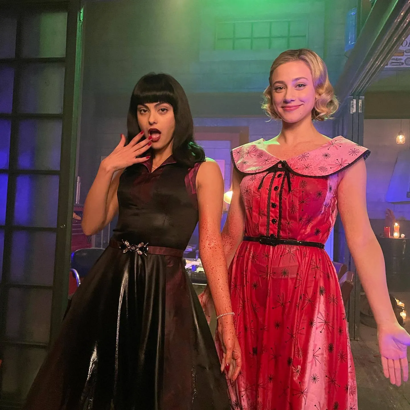 American actresses Camila Mendes (L) and Lili Reinhart in the last decade of March 2023 promote the final season of “Riverdale”. (Photo by camimendes/Instagram)
