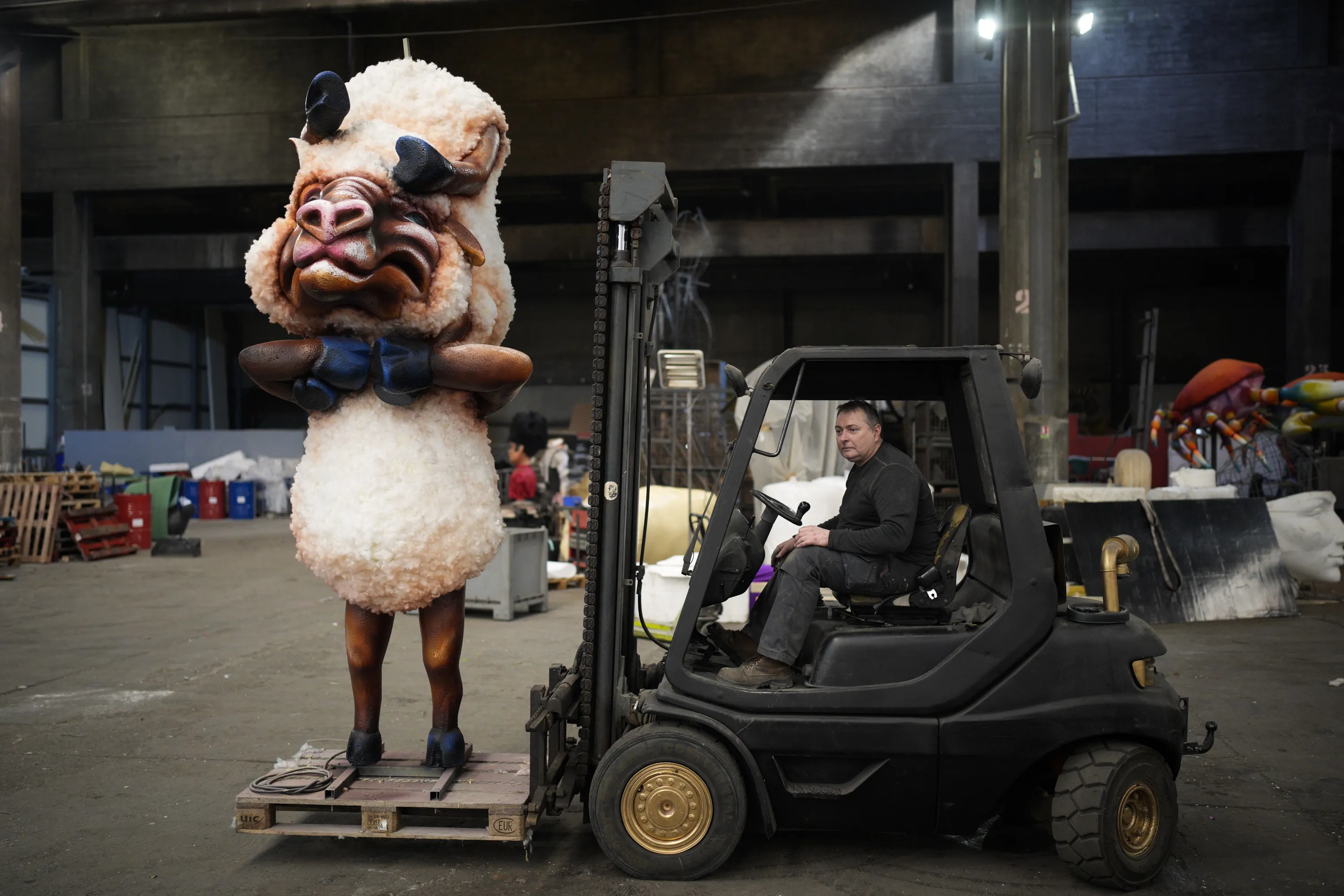 Artisan Pierre Povigna moves a carnival figure at a warehouse in Nice, southern France, Thursday, February 10, 2022. The theme of the Carnival's 149th edition in the French Riviera city of Nice is King of Animals. A loud celebration of nature, human connection and life itself after months of lockdowns, silence, social distancing and banned public gatherings, kicks off on Friday. (Photo by Daniel Cole/AP Photo)